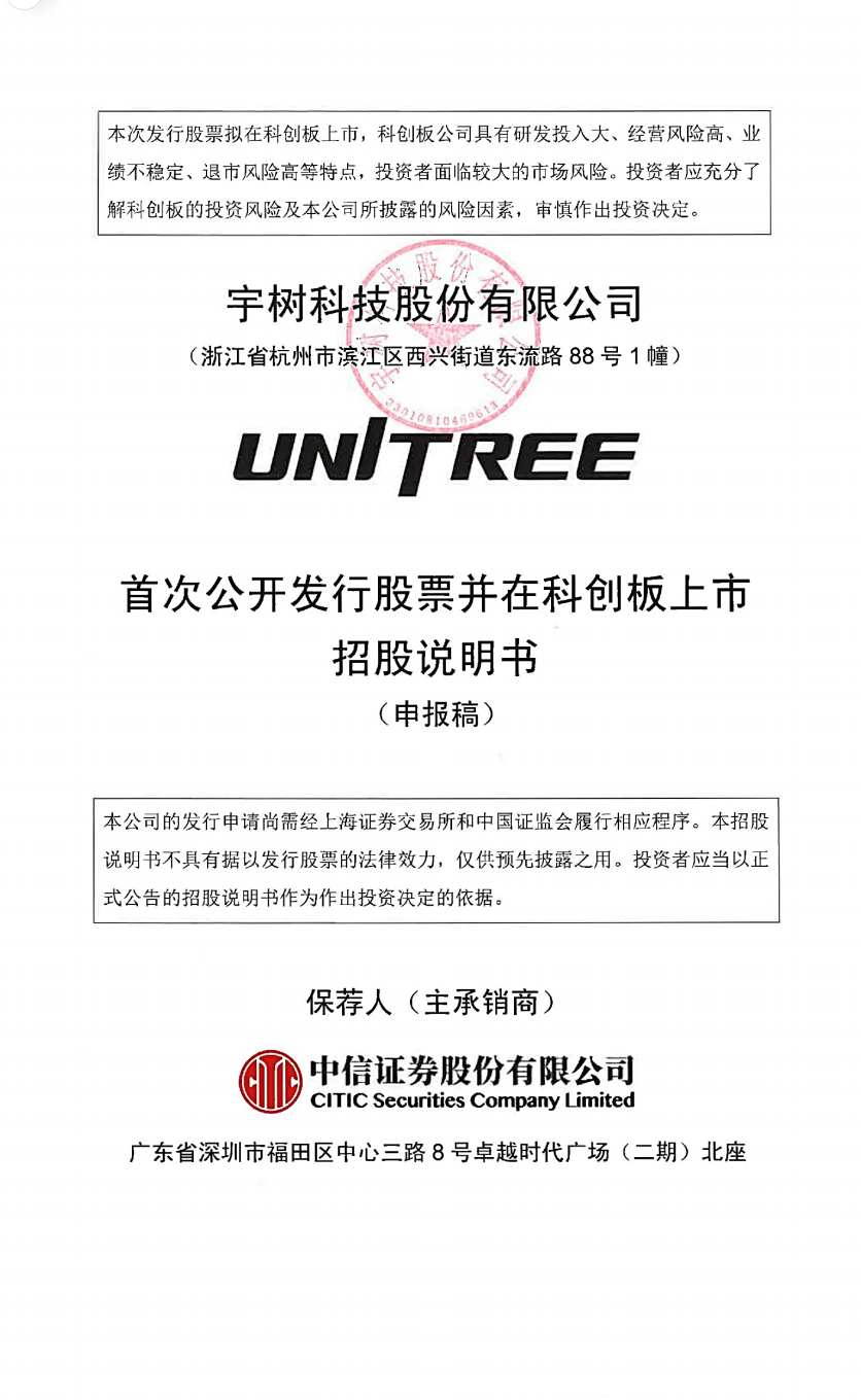3月20日,上交所正式受理宇树科技科创板首次公开发行股票申请,中信证券为独家保荐人兼主承销商。