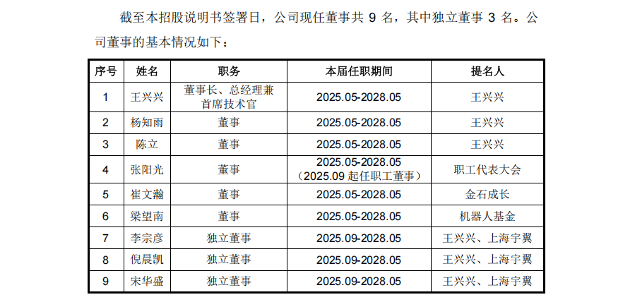 招股书披露,宇树科技9名董事中的4名为90后,其中王兴兴、杨知雨、陈立、张阳光均为90后,核心管理人员偏年轻化。