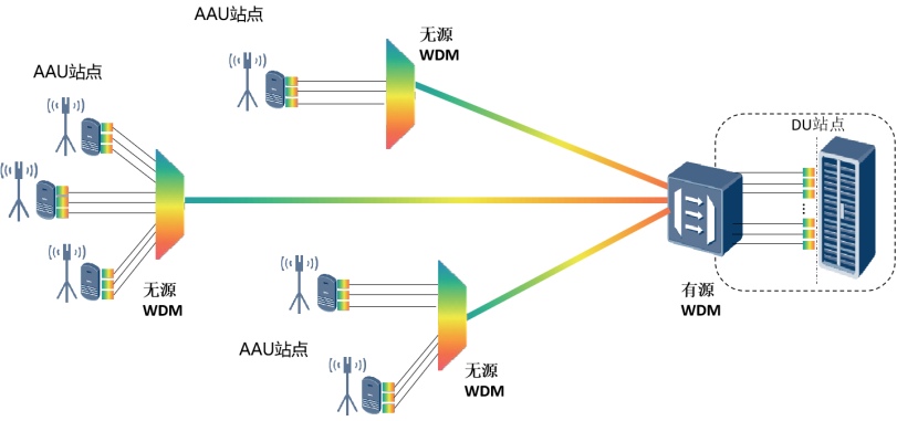 半有源CWDM一般是有网管系统,实现对5G前传业务的统一管理。组网结构以及对光模块的需求跟无源的类似吧: