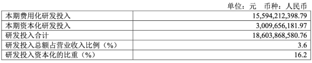 研发投入从177.92亿增加到186.04亿,占营收比例从3.4%提升到3.6%。