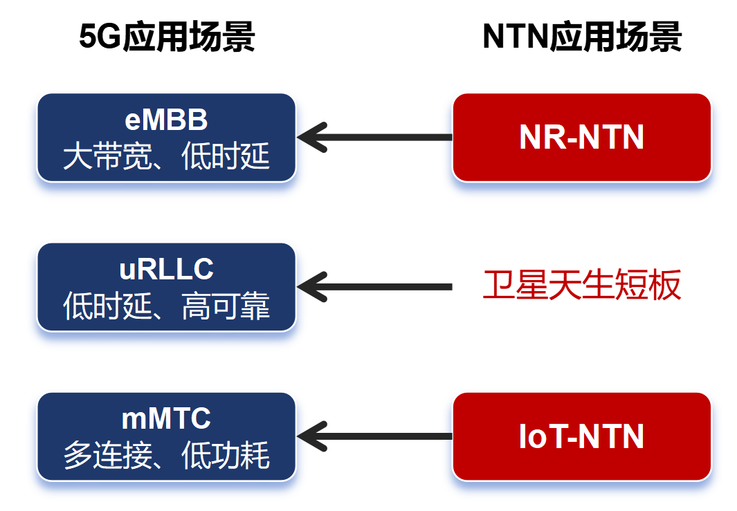 IoT-NTN对标NB-IoT和eMTC(mMTC场景),聚焦海量低功耗物联网终端的泛在连接。