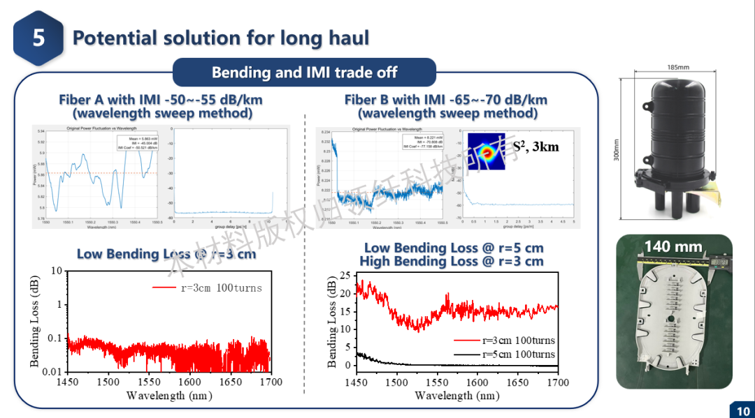这种约束,直接降低了光纤对弯曲的容忍能力。报告判断:这种弯曲能力是可以接受的。因为在实际长距离网络中,典型接头盒的弯曲半径本身就在这一量级,5 cm并不会成为工程瓶颈。这意味着,通过牺牲一部分弯曲性能,可以换取显著更优的传输质量。