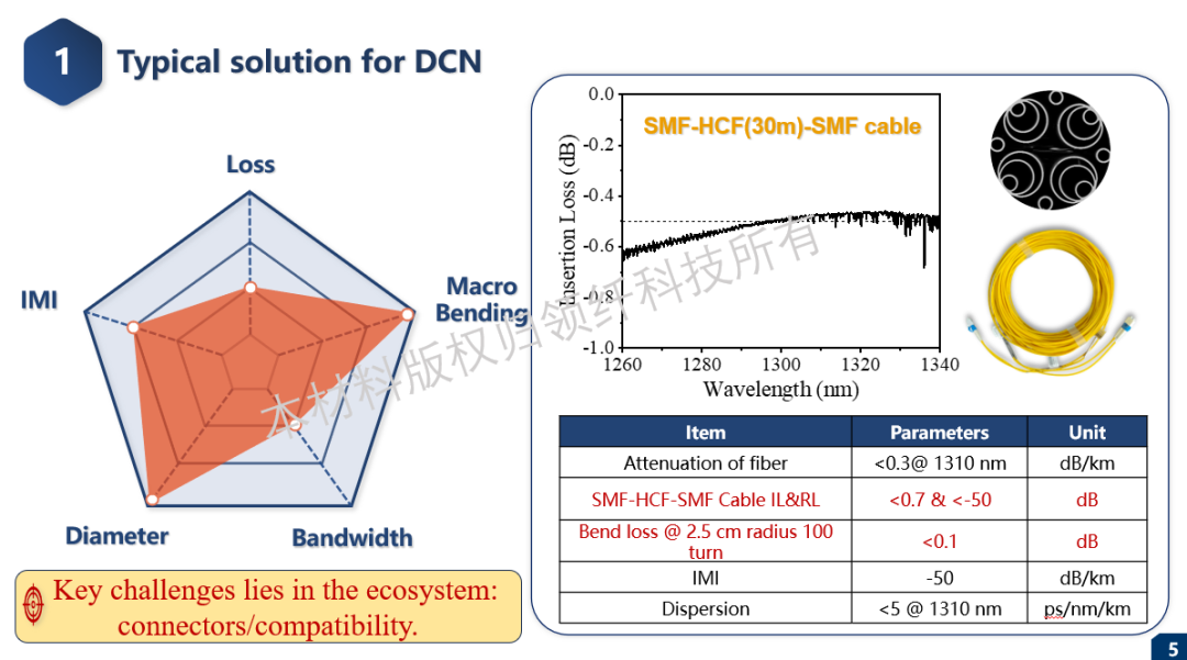 在数据中心内部(DCN)这一类短距离场景中,可以适当放宽对损耗的极致追求,转而优化机械与结构性能,以提升整体部署效率。但报告同时指出,这一场景的真正挑战,并不在光纤本体,而在系统层面:现有光模块与连接体系几乎全部基于传统单模光纤(SMF)构建,这带来两个直接问题:空芯与实芯的接头损耗成为主要瓶颈,兼容性与接口标准尚未建立。 也正因此,当前DCN场景的核心矛盾是:生态是否准备好接纳新的光纤体系。
