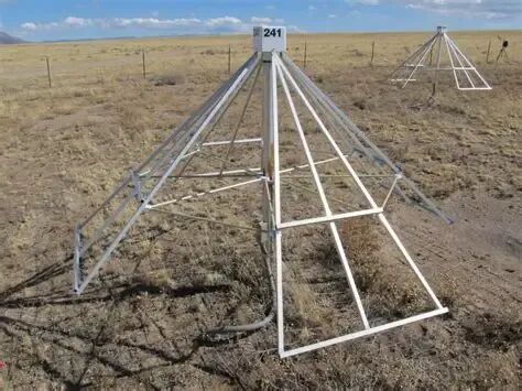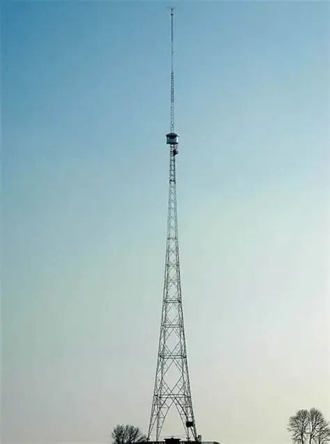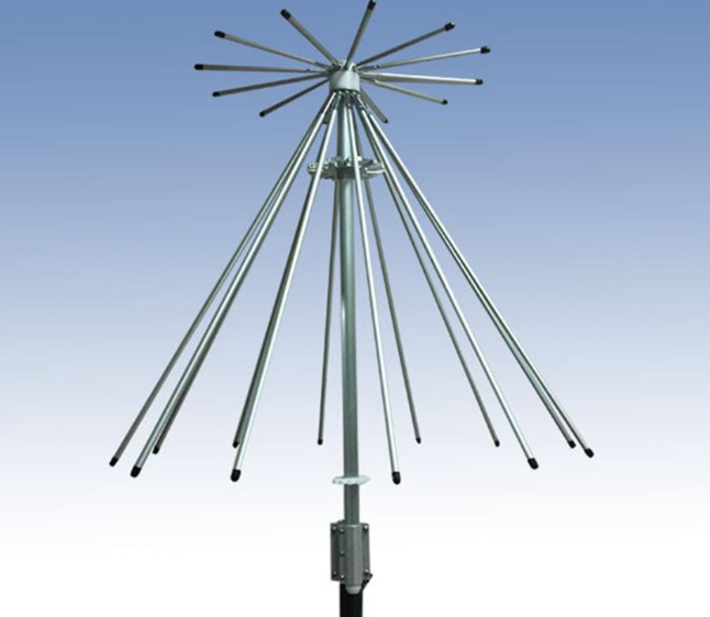 :顶部辐射多条斜向下导线,形似雨伞。场景:长波通信台、大型广播发射塔、电力通信基站。