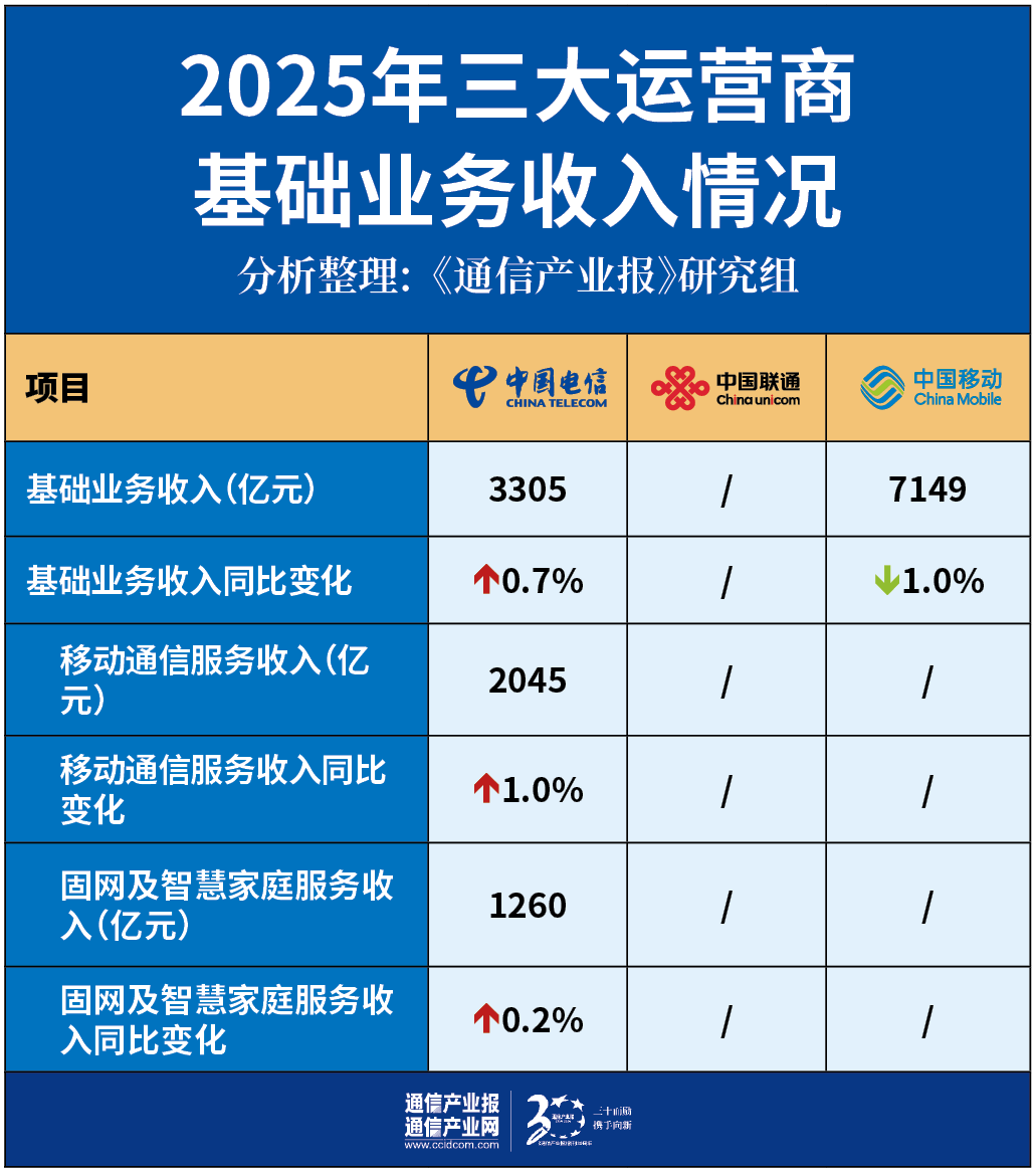 作为三大运营商的基本盘,基础通信业务在2025年依旧保持稳健增长态势,是运营商业绩稳中有进的坚实压舱石。