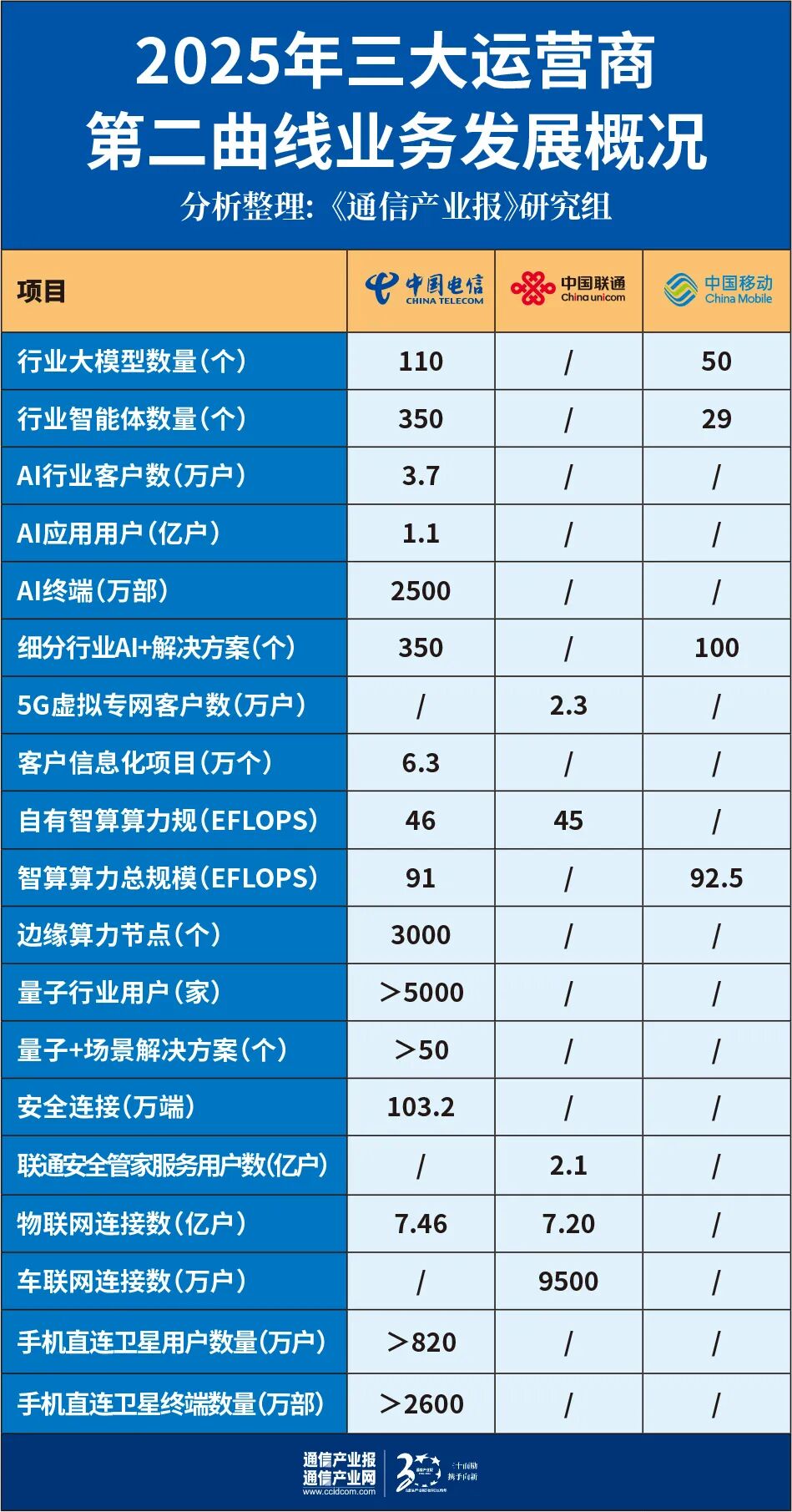 从业绩基本面来看,三大运营商的经营在2025年面临了较大的下行压力,但是业绩上升的动力依然可见,呈现出了“稳中有进、进中提质”的鲜明特征。
