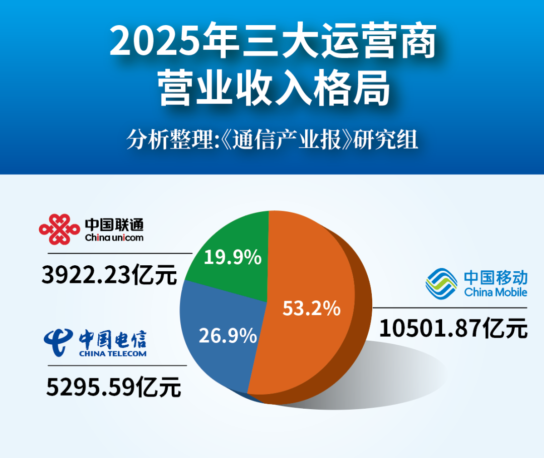 日前,中国联通、中国电信、中国移动相继发布2025年度报告。综合三大运营商业绩计算,2025年三大运营商营业收入达1.97万亿元,同比增长0.6%;净利润达1910.96亿元,同比下降0.5%。这组数据显示,三大运营商步入了较低增长区间。