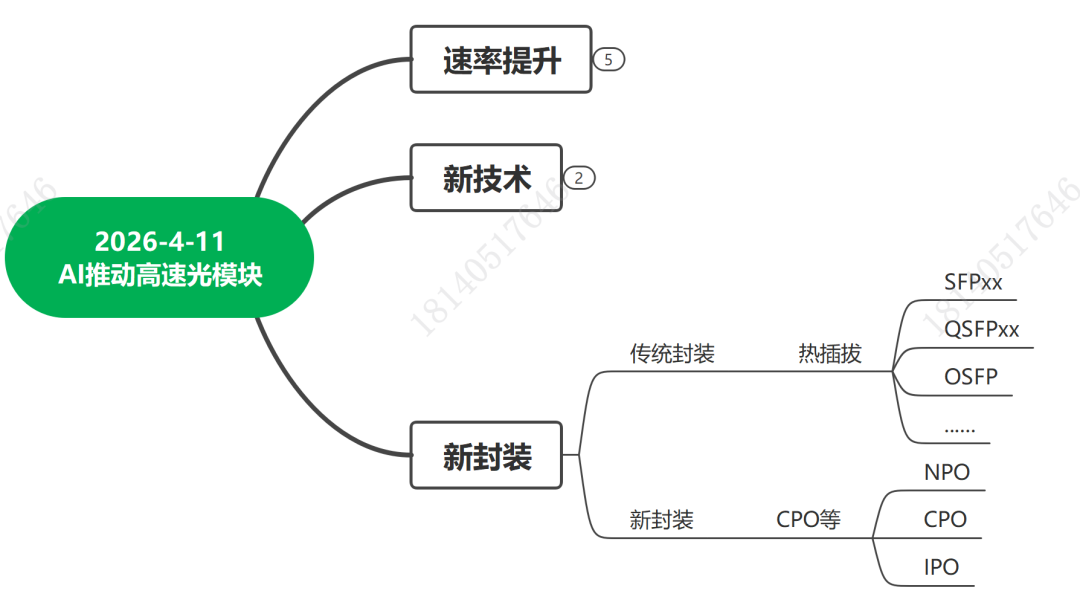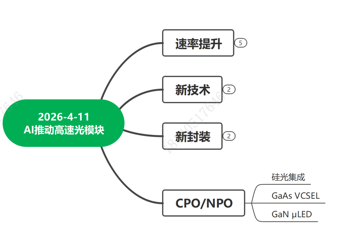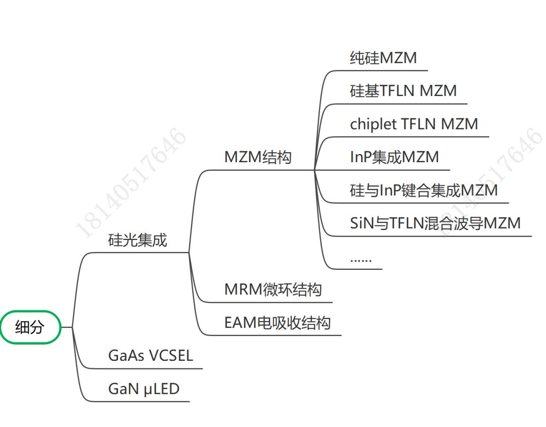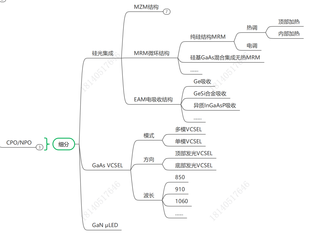 这两年AI的热闹让光模块的市场预期一再上调,高速率的提高是我们已经知道的技术演进方向,观察一下产业的状态与进展。随着这一波AI市场的光通信应用,行业里的一些技术如硅光集成技术,如薄膜铌酸锂TFLN的技术,开始随产业逐步成熟并商用。随着产业的发展,CPO、NPO的封装形态也开始进入人们的视野中,CPO或者NPO与传统的光模块有差别,对于光学芯片的要求也有所不同。随着CPO、NPO的这些新型结构的提出,采用硅光技术还是GaAs的VCSEL技术来制作CPO/NPO,也成为行业很热闹的技术对比与分析。硅光技术逐步演变成多个细分的技术路线,MZM马赫曾德结构属于一个细分方向、MRM微环结构是一个细分方向,EAM是第三个细分方向。即使是同属于MZM的马赫曾德结构这个方向呢,再再被细分出纯硅MZM分支,硅与TFLN混合键合型MZM分支,硅与TFLN chiplet封装型MZM分支,InP材料的MZM分支,硅与InP亲水键合型MZM分支,氮化硅与TFLN混合波导型MZM分支....,诸多技术路线4月11日,我们聊一下AI大算力推动光模块/CPO引擎发展的技术趋势。一共三个小时,可详询18140517646