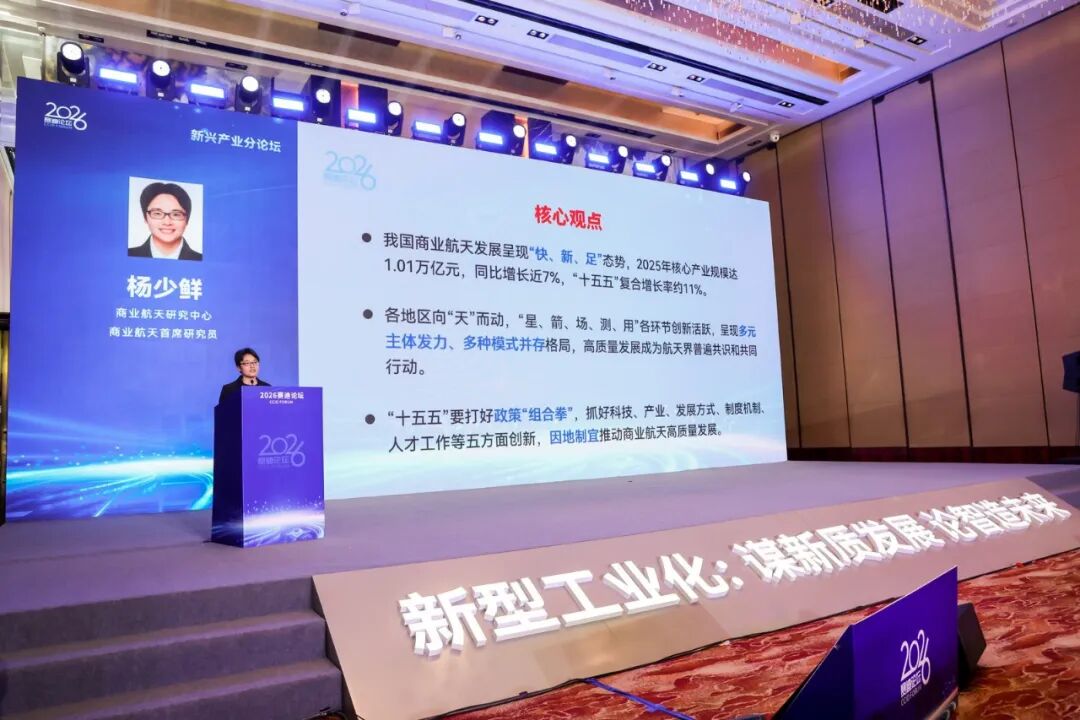 2026年4月2日,2026赛迪论坛新兴产业分论坛在北京如期举行。商业航天研究中心首席研究员杨少鲜发布的《我国商业航天高质量发展趋势研究》报告,与文昌国际航天城管理局副局长杨凡分享的地方实践经验,形成了“顶层研判+地方落地”的双向呼应,共同勾勒出我国商业航天在万亿规模节点上的发展图景与破局路径。