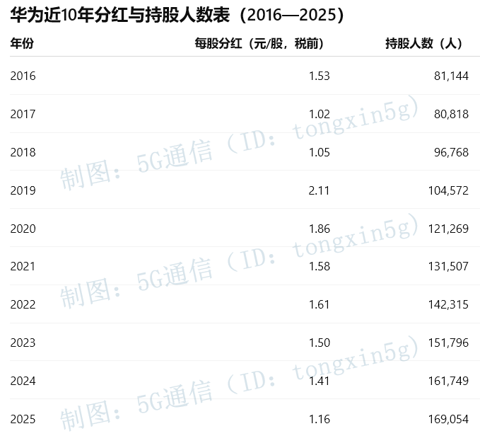 从2016年的 8.11万人,增长到2025年的 16.91万人,十年间基本翻倍。这说明华为员工持股计划覆盖面持续扩大,长期激励的底座还在变厚。