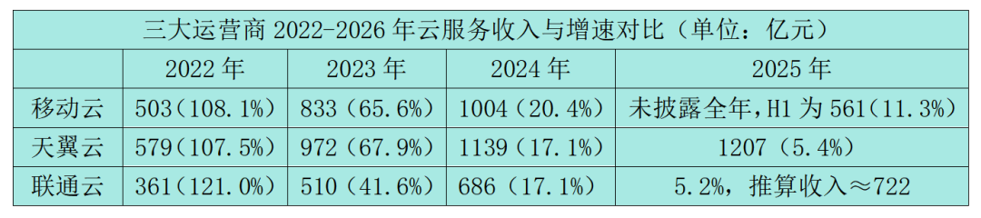 历经数年的政企市场攻城略地,运营商三朵云已然坐稳国内云市场的第一梯队,体量规模不容小觑。但2025年全年业绩清晰显示,其增长节奏全面放缓,昔日高速增长态势已然不再。天翼云以1207亿元的全年收入,居于运营商云榜首。其公有云IaaS份额攀升至国内第二,IaaS+PaaS跻身前三,市场体量实现了稳步扩张。可光鲜的规模背后,年均5.4%的增速,已不见当年翻倍增长的锐气,增长脚步明显滞缓。联通云2025年加快向AI云演进,支撑超180个省市级政务云建设,服务近40万企业客户数智转型,品牌布局持续深化。但最终全年收入增速仅5.2%。移动云未披露2025年全年云收入,但据此前公布的2025年上半年云收入561亿元,同比增长11.3%,对照2024年全年1004亿元的云收入规模,不难推算其全年增速已大幅回落。从三家核心数据来看,运营商云集体陷入失速困局,曾经的增长神话已落幕。与运营商云的增速放缓不同,互联网头部云厂商在2025年强势反弹,AI成为核心增长引擎,双方的发展差距逐步拉大。阿里巴巴集团发布的2026财年Q3(2025年第四季度)财报显示,阿里云收入加速增长36%,超彭博一致预期,AI相关产品收入连续第十个季度三位数增长。阿里AI Agent双线突破,C端应用千问全端月活跃用户超3亿;B端平台悟空开启公测,形成双旗舰格局。腾讯云所属的ToB业务(金融科技及企业服务)2025年全年营收突破2294亿元,创下历史新高;企业服务单季收入增长22%。这主要得益于云服务与微信小店带货技术服务的拉动。受供应链持续优化和PaaS、SaaS的增长带动,腾讯云业务收入显著增长,录得全年规模盈利。百度集团财报显示,2025年全年,智能云基础设施收入约200亿元,同比增长34%,四季度AI高性能计算订阅收入更是暴涨143%。大模型与智算服务的深度落地,成为其增长的核心抓手。从增速对比来看,互联网云厂商普遍保持30%左右的高增长,而运营商云均为个位数或低双位数增长。曾经,运营商云是云市场的“搅局者”。凭借“云网融合”的基础设施优势、遍布全国的属地化服务能力,以及政企市场的资源壁垒,三朵云在2020年后开启狂飙。如今,以阿里云为代表的互联网云厂商凭借在AI领域的先发优势,正重新回归高速增长轨道。国际市场研究机构Omdia数据显示,2025年第三季度,阿里云在中国云市场的份额从上季度的34%提升至36%,领先优势扩大。华为云以16%的份额居于第二,腾讯云占比9%,运营商云的市场份额被持续挤压。运营商云增速集体失速,并非单一原因导致,而是多重因素叠加的结果。政企上云的基础红利已基本见顶。运营商云的核心客群集中在政务、国企等政企领域,经过数年集中上云建设,基础云资源部署已接近饱和。新增项目减少、存量竞争加剧,单纯依靠传统政企订单,已难以支撑云业务高速增长。AI云时代的技术储备存在明显短板。民忆当前云市场的增长逻辑已从基础算力供给,转向AI原生云、大模型服务、行业智能化解决方案。互联网云厂商提前布局大模型研发与产品化,形成了成熟的AI云服务体系。而运营商云大多停留在算力、存储等基础IaaS层面,AI技术研发、产品迭代、市场化应用能力不足,错失了AI带来的增量市场。市场化运营与生态能力存在差距。运营商云依托资源优势深耕政企项目,模式偏项目制交付,产品标准化、生态丰富度不足。面对中小微企业市场、通用AI应用场景,其产品灵活性、服务响应速度均不及互联网云厂商,难以拓展新的增量客群。面对被互联网云厂商拉开身位的现状,运营商云核心在于立足自身优势,走出差异化发展路线,补齐能力短板,在成本与盈利之间找到平衡点,实现高质量发展。锚定云网融合,打造不可复制的差异化优势。运营商最大的护城河,是遍布全国的网络基础设施、算力网络资源。在智算时代,AI训练、推理对网络低时延、高带宽的需求,是运营商云的核心机会。运营商可以依托 “云+网+边+端” 的一体化能力,打造AIDC、智算网络、算力调度等差异化服务,为AI大模型训练、企业智算需求提供专属网络保障。聚焦行业场景,补AI技术短板,实现错位竞争。运营商云无需在通用大模型上与互联网云厂商正面竞争,而是要聚焦行业场景,打造政务、工业、金融等垂直领域的行业大模型。结合自身属地化服务能力,推出行业定制化智算方案,将智算高增长的优势转化为整体云业务的增长动力。深化市场化改革,激活体制活力。运营商云需要优化内部运营机制,提升云产品标准化、迭代速度。一方面,拓展中小微企业、C端云服务市场,推出更灵活的产品、更具竞争力的价格;另一方面,优化内部管理机制,提升创新速度,吸引AI、云服务领域的高端人才,缩小与互联网厂商的技术差距。开放生态合作,实现竞合共赢。运营商可发挥底层算力基础设施优势,与互联网云厂商、AI技术企业开展合作。由运营商提供算力与网络支撑,合作方提供上层AI应用与模型能力,形成互补格局,共同做大云服务市场。2025年的云服务市场,已然完成了一轮新的格局划分。运营商三朵云依靠资源红利实现规模扩张的阶段已过,单纯的体量增长无法弥补增速与技术上的差距。想要摆脱落伍态势,唯有跳出传统路径依赖,将云网优势与AI技术深度结合,真正从资源型云商转向技术服务型云商,才能在新一轮云市场竞争中重新找回增长节奏。