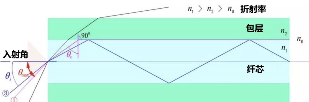 我们知道,光纤的纤芯折射率高于包层折射率,光信号之所以能在光纤中传播,是因为光在纤芯和包层的界面上发生全反射,被限制在纤芯内部传播。