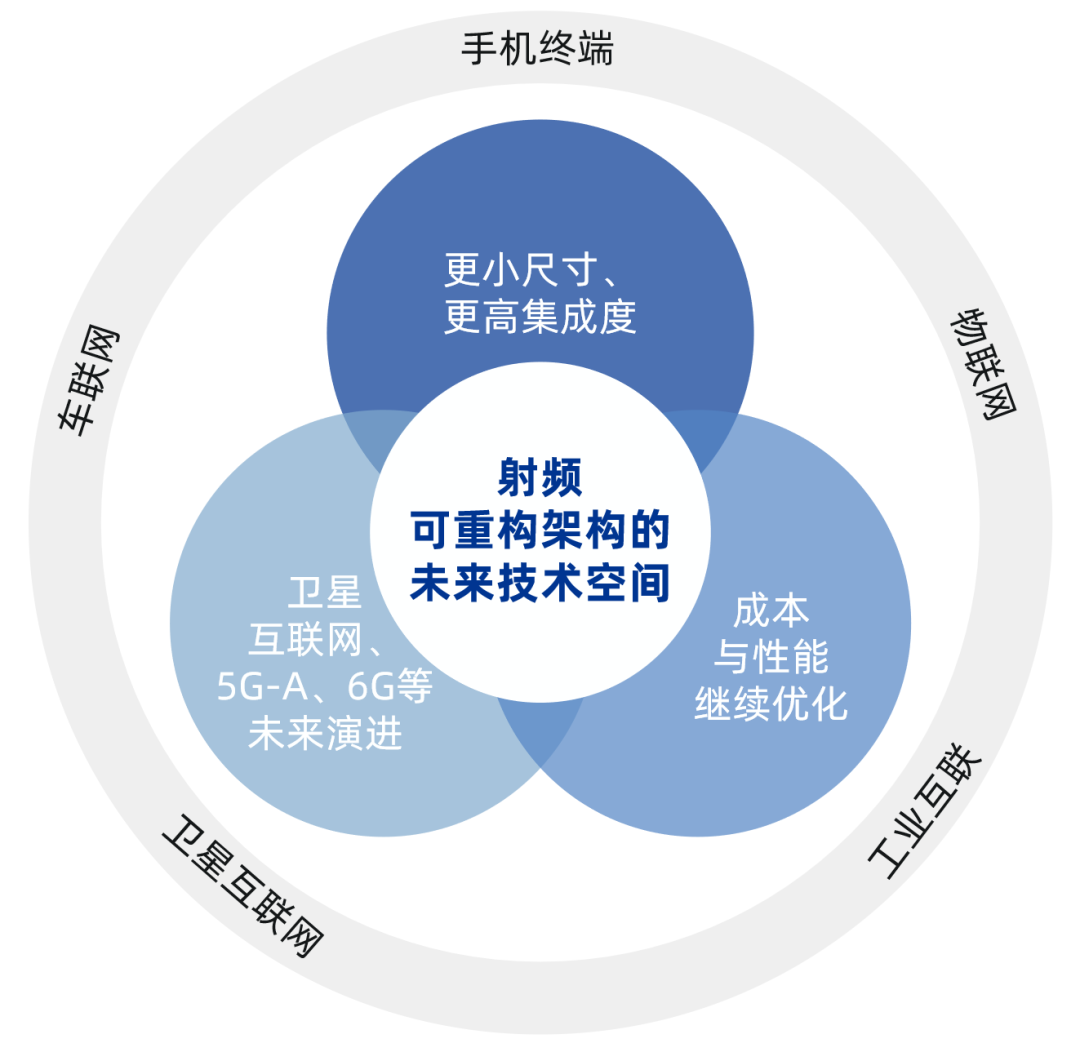 展望未来,6G通信和卫星互联网正在成为产业新热点。 6G将覆盖更高频段(如U6GHz频段),卫星互联网则需要终端同时支持地面蜂窝和卫星通信。可重构架构的灵活性使其天然适合这些复杂、多模、多频段的场景——通过软件定义硬件,一颗芯片即可适配不同制式和频段要求,为6G和卫星互联网的终端普及提供关键的射频前端解决方案。