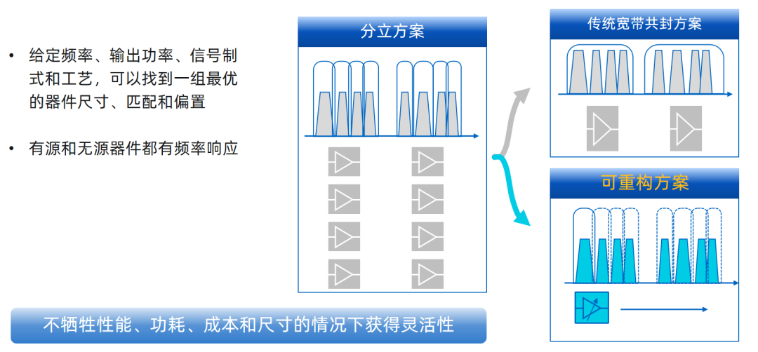 更高集成度的多频段组合的灵活适配:中国市场对频段的需求复杂且变化快(如n28、n5、n40、n41、n3、n8、n34/39等),可重构架构能够快速响应新的频段组合要求,提有效提升产品集成度与产品性能。