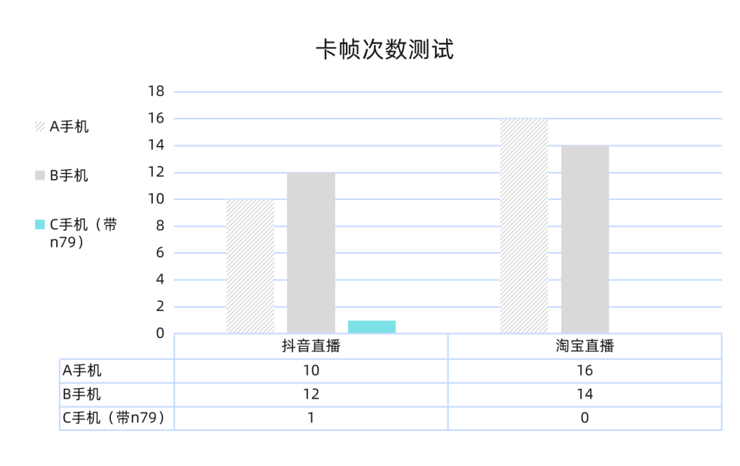 实测数据直观地反映了这一差距:在高铁候车室的一小时测试中,不支持n79的手机卡帧次数高达10次以上,单次卡顿时长最长接近3分钟;而支持n79的手机卡帧次数接近0次。这意味着,在同样的弱网或高负载环境下,n79直接决定了用户的连续体验是“流畅”还是“断断续续”。