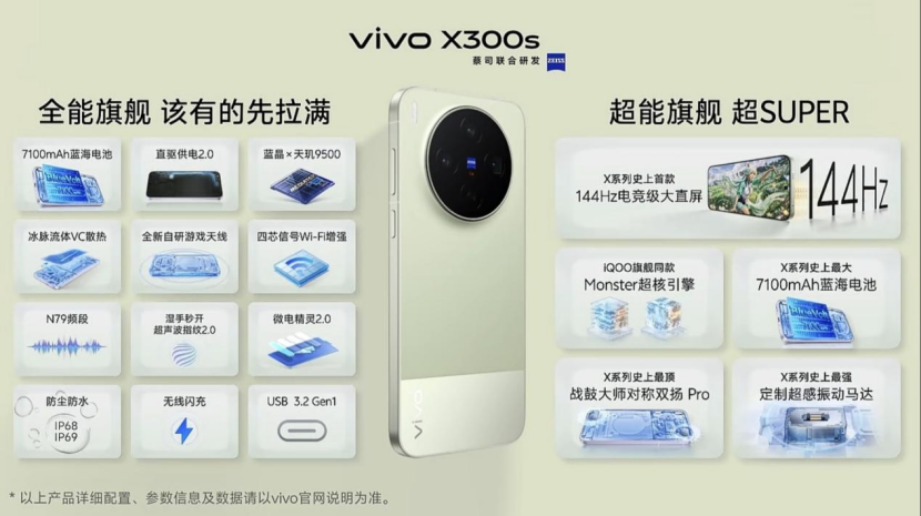 在这场发布会中,有一款手机获得了业界广泛关注——它就是 vivo X300s。vivo产品副总裁黄韬表示,X Super(X300s)是vivo经过长期研究决定推出的“一个全新物种”,是“综合性能最好的产品”,“各方面都要做到行业最好”[1]。