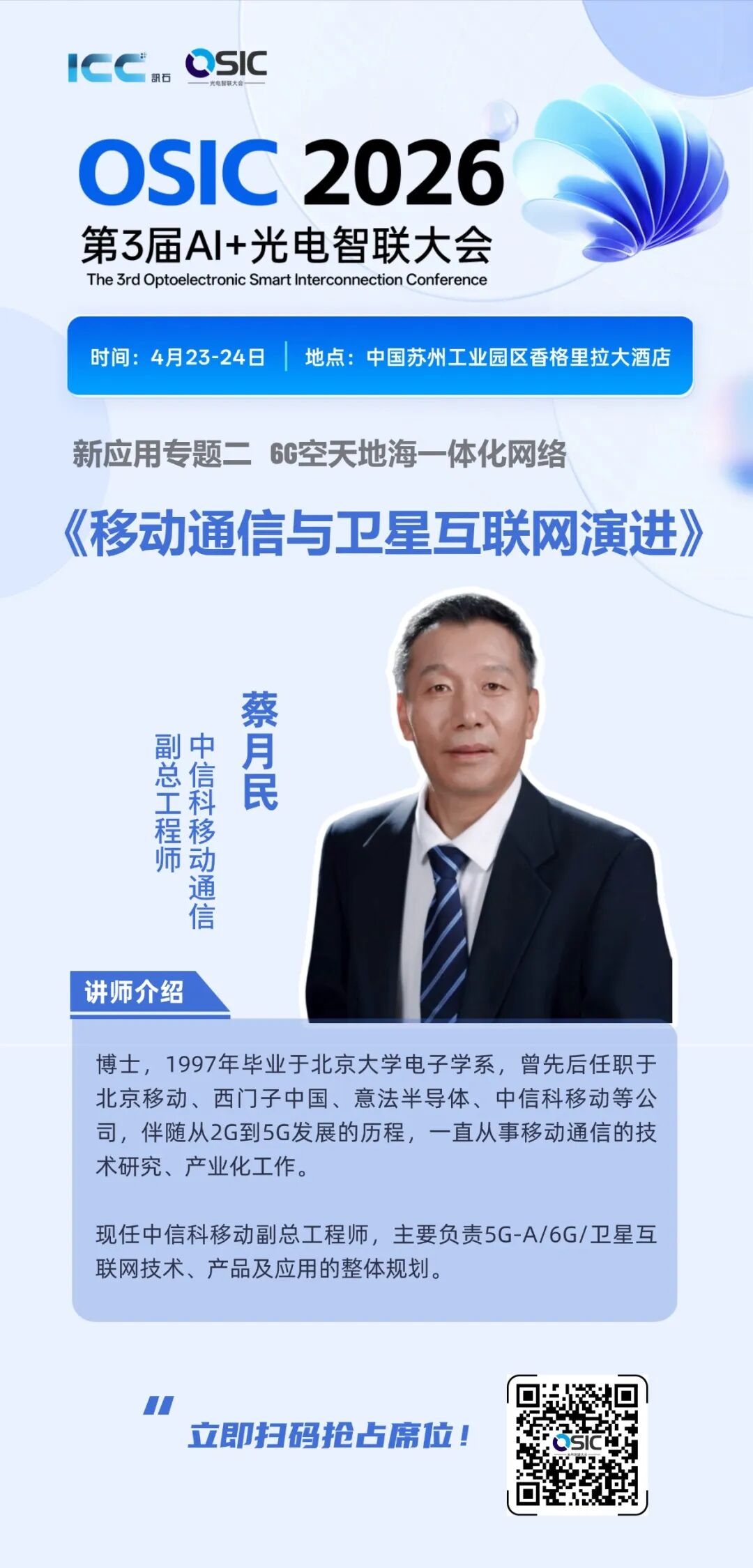 OSIC 2026 演讲预告 |中信科移动 蔡月民:移动通信与卫星互联网演进