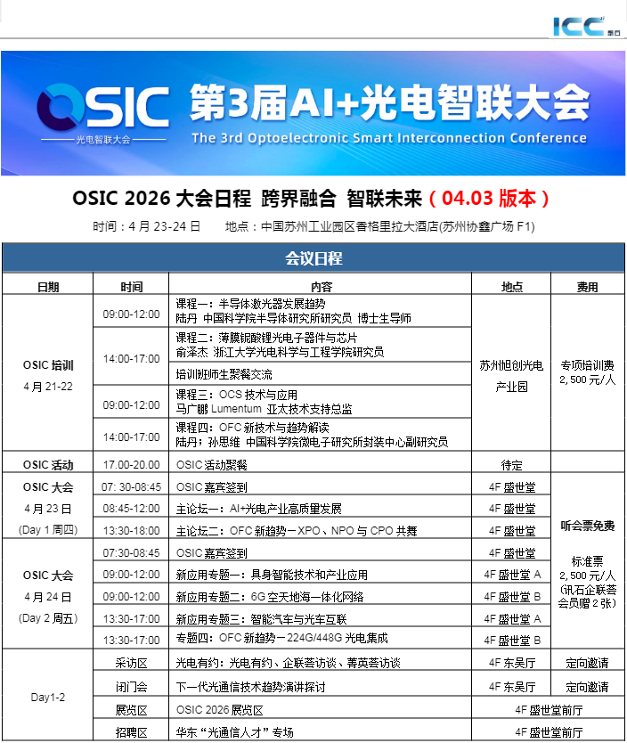OSIC2026 欢迎广大光电领域行业同仁、科研院所、高校师生、投资界人士参加!