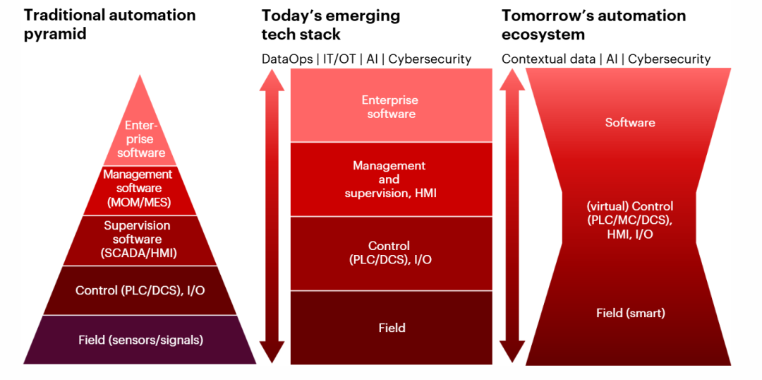 数十年来,工业自动化领域遵循着这样一条发展法则:通过不断提升控制系统的复杂性,来提升生产与制造的效率、改善产品质量和安全水平。基于这种模式,价值似乎自然而然地汇聚到高性能专有控制器和紧密集成的系统中,就像一座稳固的金字塔。然而,这座“价值金字塔”如今正在悄然松动,整个市场创造价值的方式也在发生翻天覆地的变化。