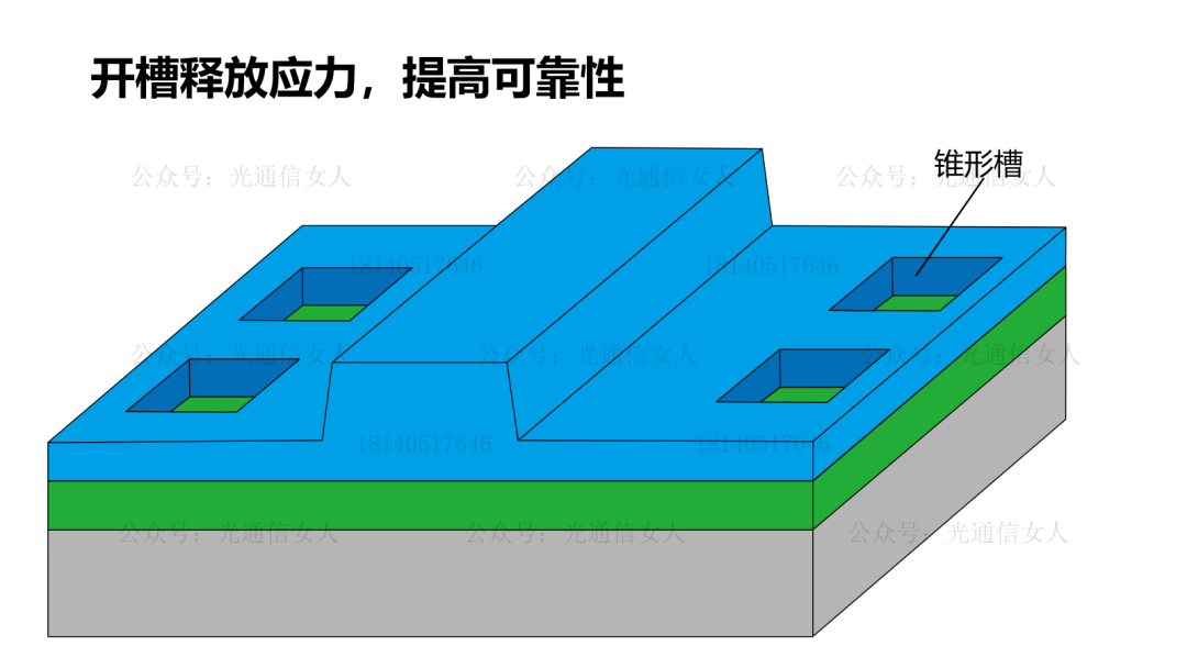 HyperLight这几年在薄膜铌酸锂的高速调制器方面有很多的技术分析,之前写过他家“chiplet”的工艺,就是硅光芯片与铌酸锂调制器,不使用异质集成的方式,而是采用芯片组装工艺,来兼顾性能最优选项。Y11T121 HyperLight的薄膜铌酸锂调制器芯片的封装也写过他家的可靠性验证,今天写一铌酸锂上开槽设计。硅晶圆的开槽设计,Y12T97 略解释一下ST的200G速率的硅光流片平台的“增厚”大带宽工艺,硅的晶圆开槽,可以用来做悬梁波导,热调隔离空间,增大带宽的射频隔离设计等等。硅晶圆异质集成薄膜铌酸锂的开槽设计,通常也是为了提高带宽的射频隔离,开窗要开到硅衬底。- Y10T154 中山大学:TFLN衬底刻蚀与射频损耗