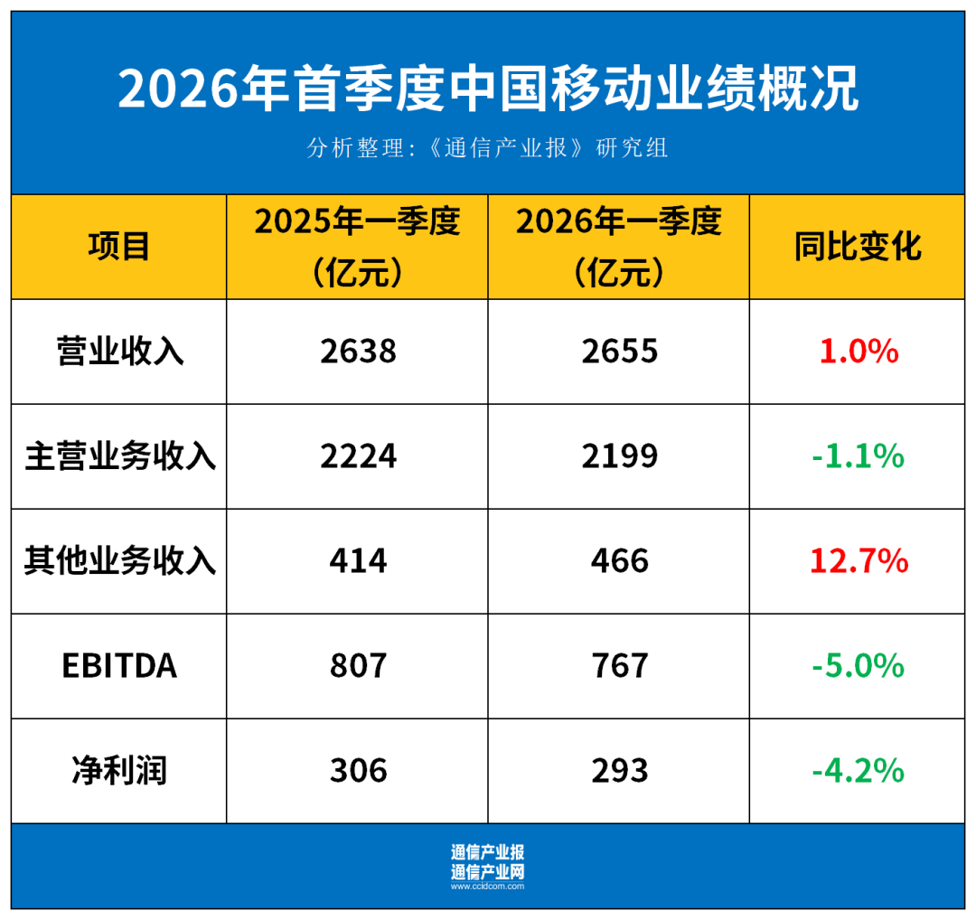 4月20日晚上,中国移动发布2026年第一季度报告,经营业绩总体平稳。
