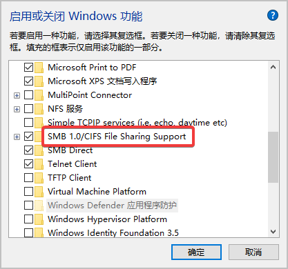 启用SMB 1.0/CIFS File Sharing Support功能。