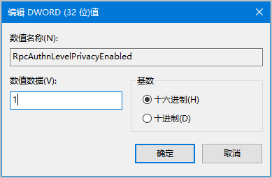 RpcAuthnLevelPrivacyEnabled 的新DWORD值。设置该值为