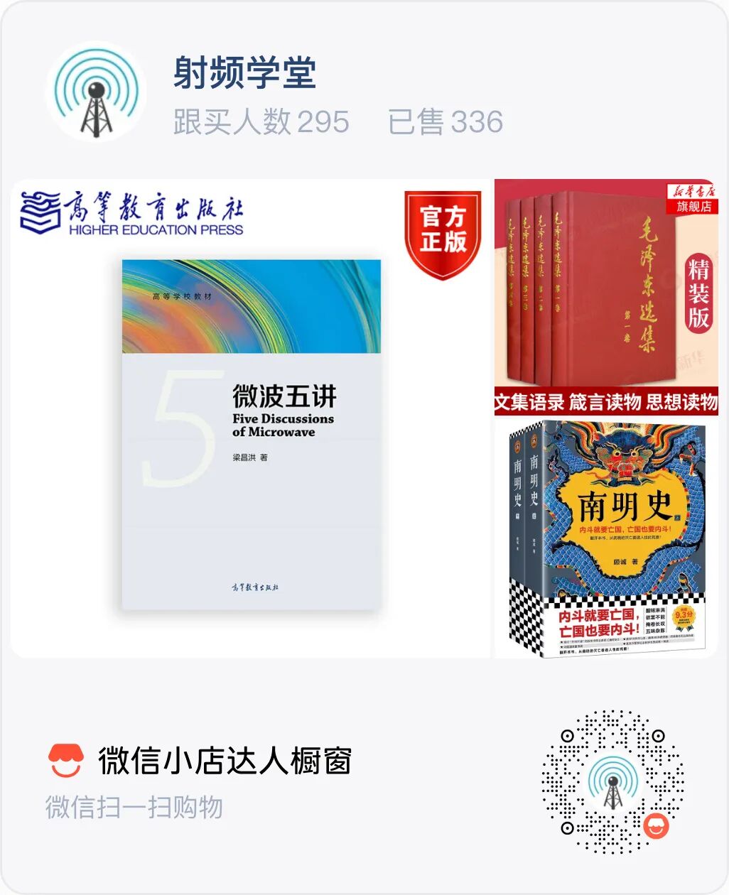 深耕射频行业的我们都清楚,优质专业书籍的价值无可替代。它既是硬核知识的沉淀载体,也是塑造工程思维、提升问题解决能力的核心基石。每位射频人的书架上,都应当珍藏几本经得起时间沉淀的经典著作,在深耕进阶、遇到瓶颈时,随时汲取养分、获得启发。在微波与射频领域,梁昌洪教授的著作早已成为行业标杆。作为首届国家级教学名师,梁教授深耕微波领域数十载,学识深厚、教研经验丰富。其代表作《简明微波》《微波五讲》凭借扎实的理论体系与独到的教学逻辑,深耕行业多年,赋能一代代射频工程师成长。我们始终坚持为大家甄选优质专业好书,但不少经典读物因出版周期、版权等问题常年绝版,想要入手实属不易。此前我们整理梁昌洪教授相关内容时,偶然发现科学出版社官方微店,《微波五讲》目前正版现货在售,实属难得!这本书我们已多次推荐,累计售出 50 余本,口碑稳定。今天再次重磅分享,希望这本经典佳作,能成为各位射频人工作之余沉淀学习、精进提升的常备读物。