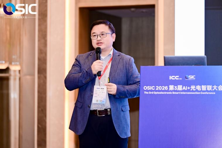 ICC讯 4月23-24日,OSIC 2026第3届AI+光电智联大会圆满举办。在专题论坛《OFC新趋势:224G/448G光电集成》,光迅科技营销市场副总经理蒋波发表《AI场景下的光器件需求分化与技术代际》精彩演讲,阐述光器件从“通用化”走向“定制化”形成的鲜明技术需求分化与并行发展空间。
