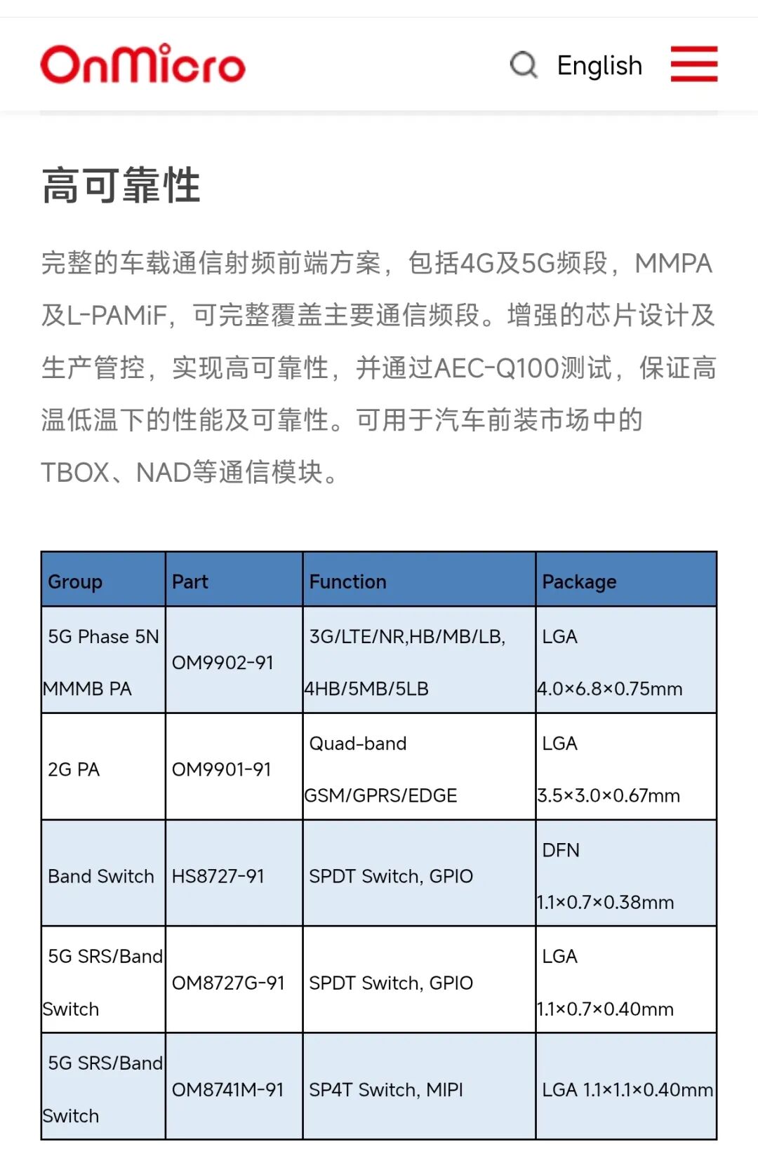 当下,产业界正加速跨越车规认证这一“必经之路”,国产车载半导体核心部件自主化进程持续提速。近日,国内领先的射频芯片企业北京昂瑞微电子技术股份有限公司(简称“昂瑞微”)正式宣布,旗下多款5G车规级射频前端模组已一次性全部通过AEC-Q100 Grade 2认证,标志着国产车规级射频芯片在前装市场取得了实质性进展,为智能网联汽车产业链自主创新注入强劲动力。车规级认证是汽车电子零部件进入车载前装市场的核
