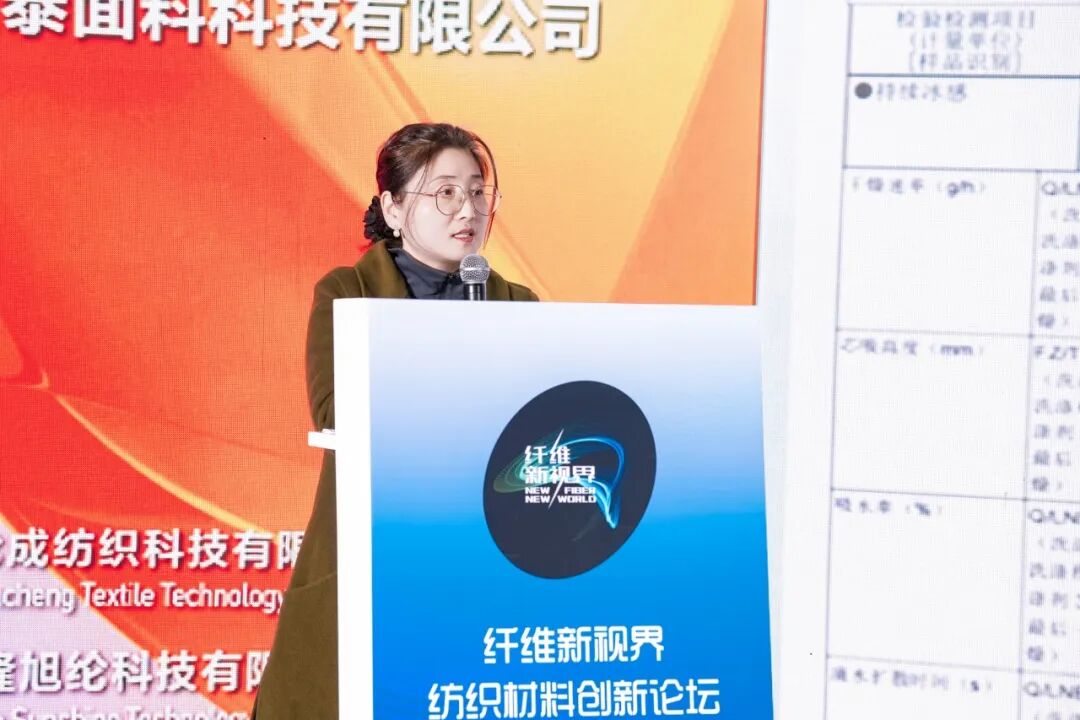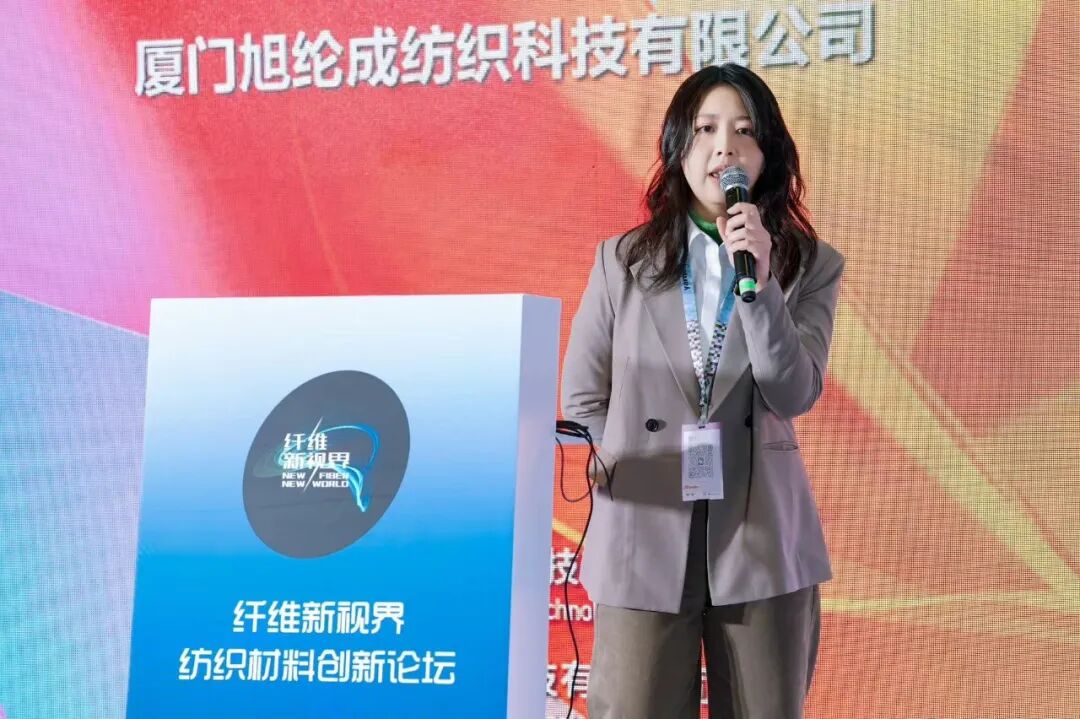 旭纶成纺织科技副总经理黄昕详细解读了Dynatex丹特丝的技术内核、产品优势与应用前景,吸引了众多面料企业、服装品牌、采购商与行业媒体驻足交流。