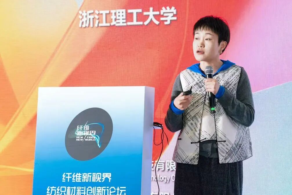 作为行业产学研合作积极推动者,浙江理工大学教授王雪琴分享了相变纤维结合丝绸面料的开发应用。该技术不仅突破了真丝的使用局限,更以“调温-控湿-抑菌”三位一体的健康微环境管理系统拓展了丝绸在四季服饰及家居等场景的应用。