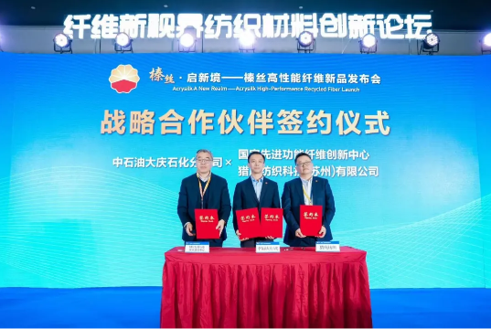活动现场,大庆石化与国家先进功能纤维创新中心、猎鹰纺织科技等多家下游企业签订战略合作协议,意味着榛丝规模化产业化生产正式落地。作为国内首家掌握该产品全套自主研发生产技术的企业,大庆石化打通了龙江“科创源头”到江浙“织造高地”的产销链路,实现产业联动、价值共生,激活了高端纤维市场全新发展生态。