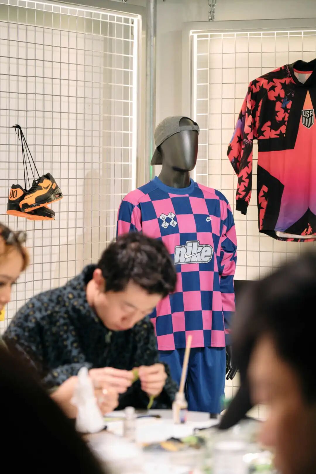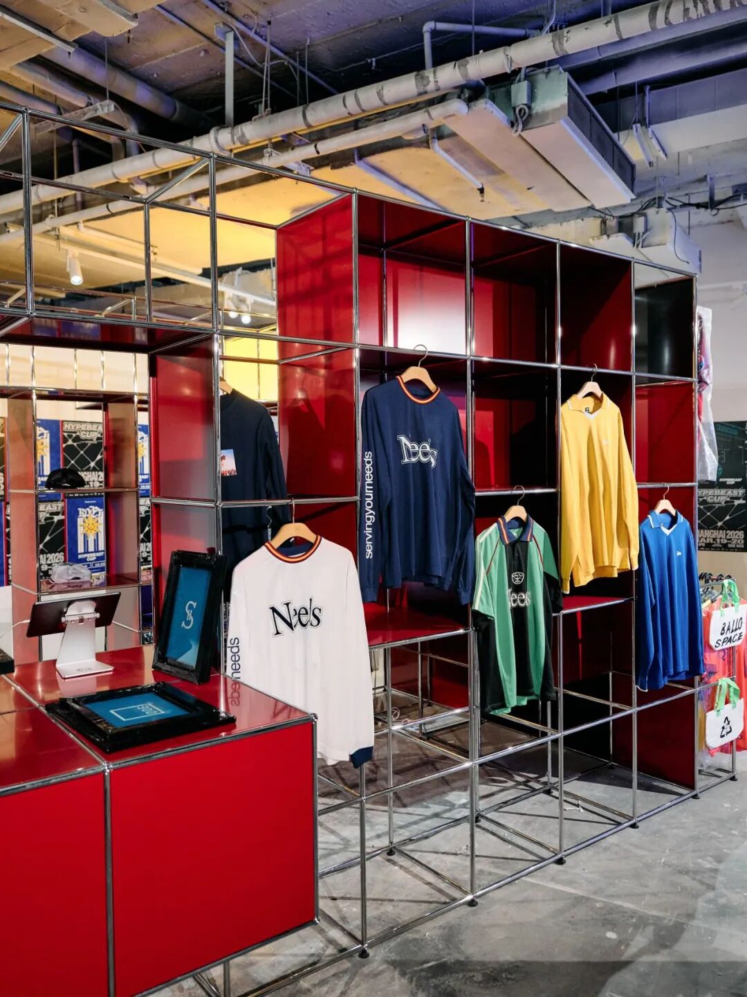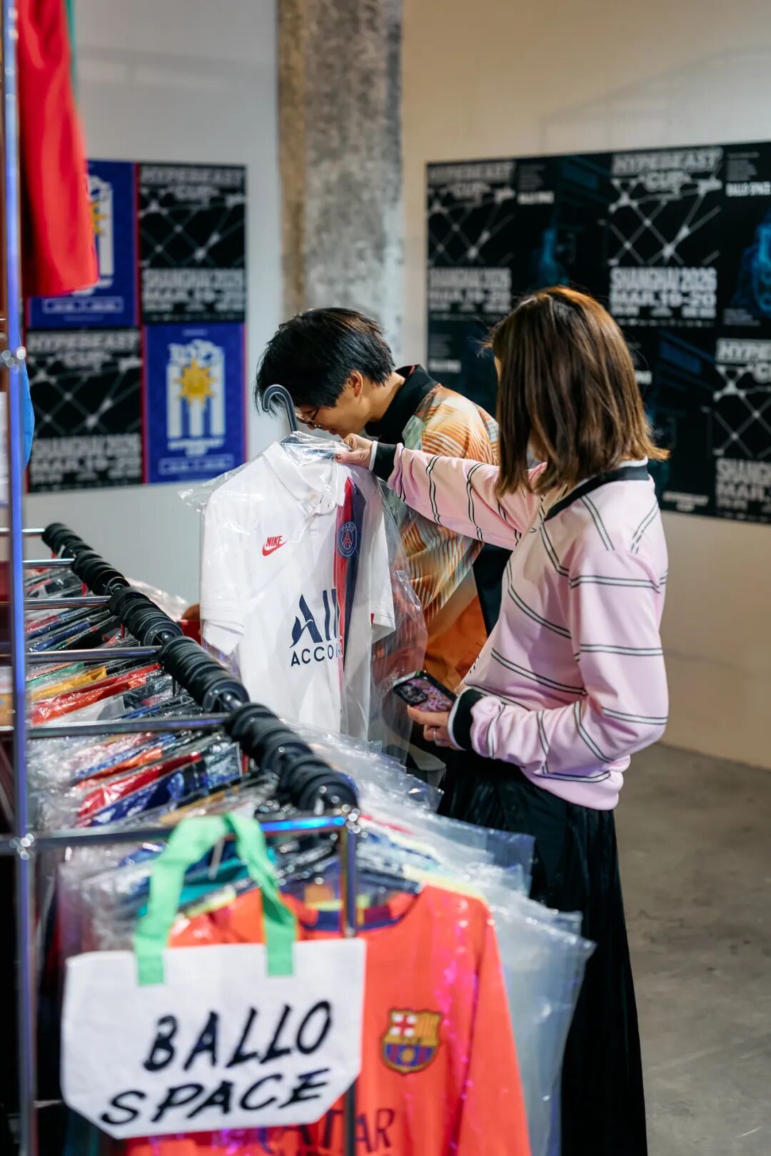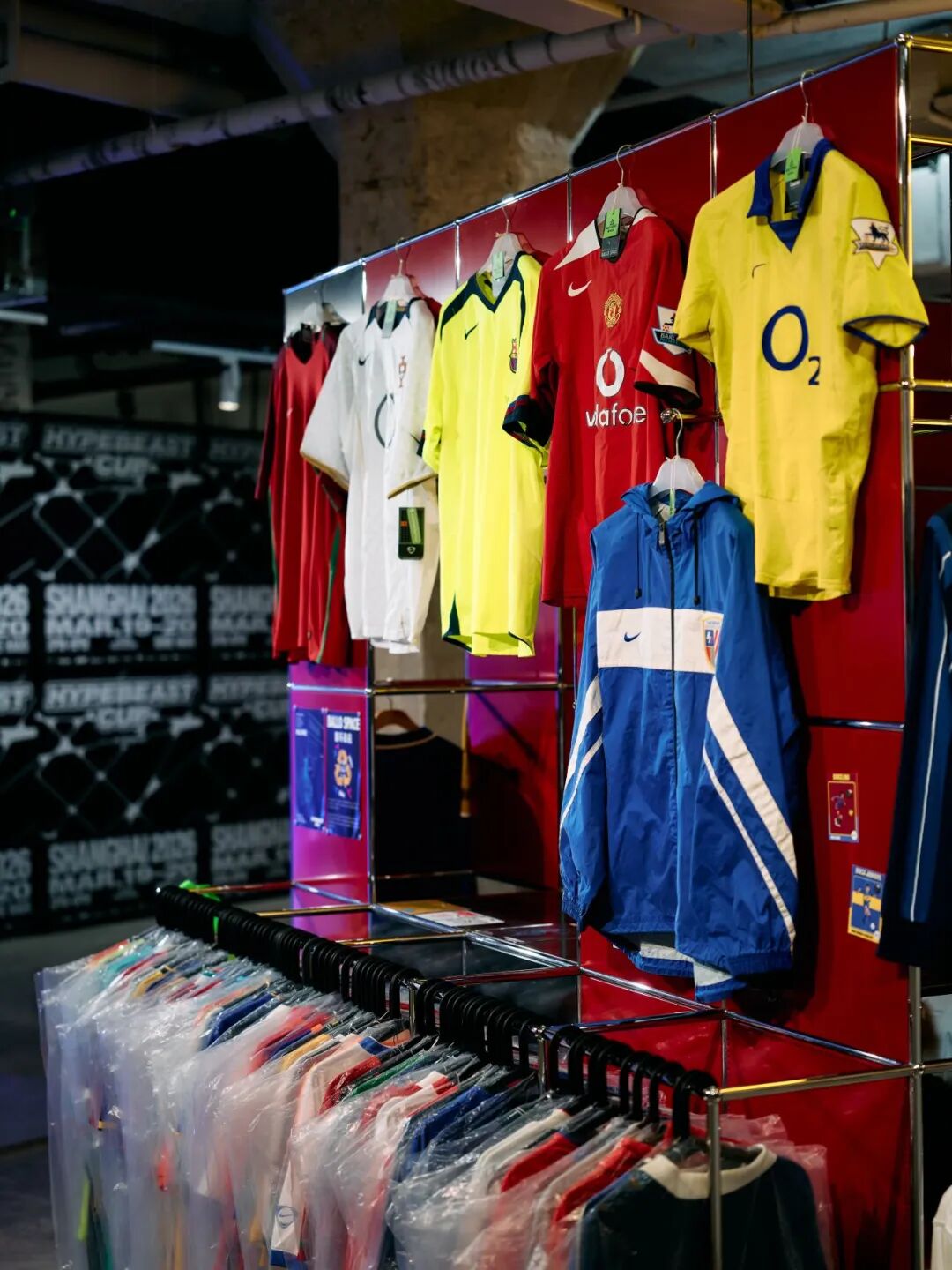 在 1 楼的 Hypebeast Cup Market 中,创意与社区能量持续迸发:USM 利用模块化系统搭建出极具工业感的「球门」中心;Randomevent 带来创意报刊亭并首发联名围巾,DOE 则将丝网印刷互动带入现场。BALLO SPACE 呈现了珍稀的 Nike 与 Jordan 品牌复古装备;PlayStation 在虚拟绿茵场延续博弈;而 Nono’s 的定制菜单与 Hypebeast Booth 共同为到访者注入了兼具烟火气与灵感的社群补给。