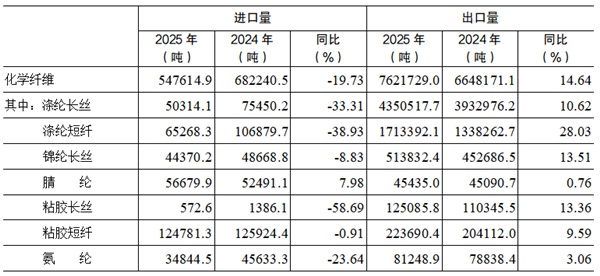 2025年,面对复杂多变的国内外环境,中国经济坚持“稳中求进”总基调,实现了总量平稳增长与结构持续优化,全年GDP增长5%,在全球主要经济体中保持领先。在此背景下,化纤行业呈现“运行总体平稳、结构分化凸显、转型步伐加快”的发展特征:全年产量保持4.3%的平稳增长,