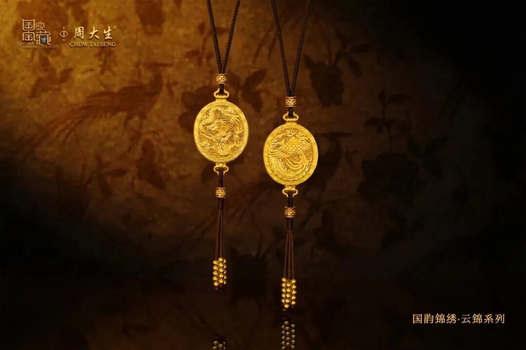 “国韵锦绣·云锦”系列作品由周大生×国家宝藏携手国家级非遗代表性传承人金文共同打造。作品融合“云锦”织造技艺与古法黄金工艺,创新推出“云锦织金”工艺,将百花纹样“织”进黄金之中,以国宝文化祝福为核、高级黄金珠宝为形,诉说千年匠心。