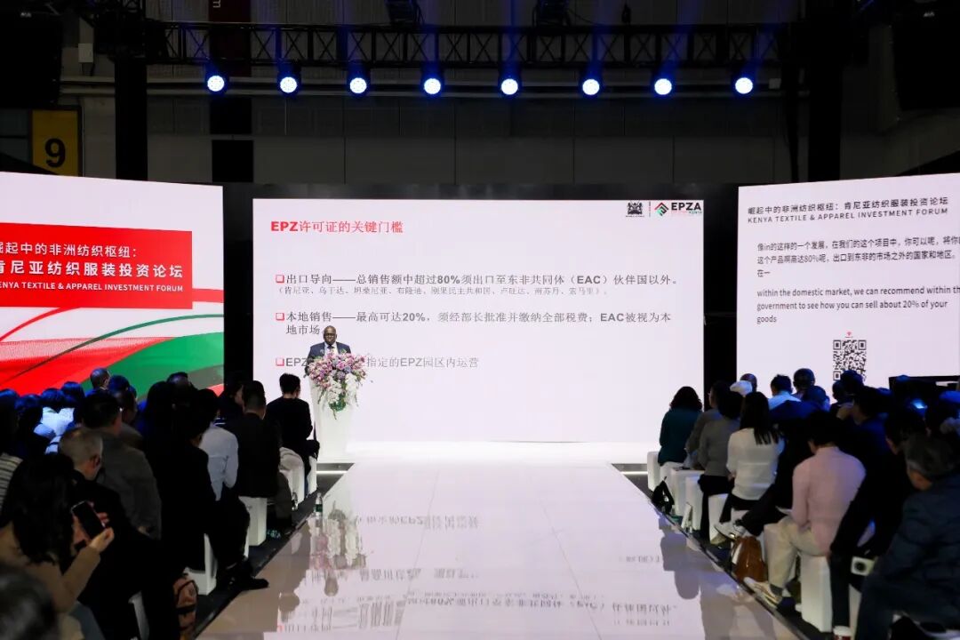 论坛现场,肯尼亚出口加工区管理局(EPZA)首席执行官Richard Omelu与肯尼亚投资局(KenInvest)纺织服装领域投资负责人Vincent Andayi深度解读了该国纺织服装产业链的投资优势,从政策激励、产业配套、绿色能源等多个维度,向在场听众描绘了一幅充满机遇的“东非投资热土”蓝图。