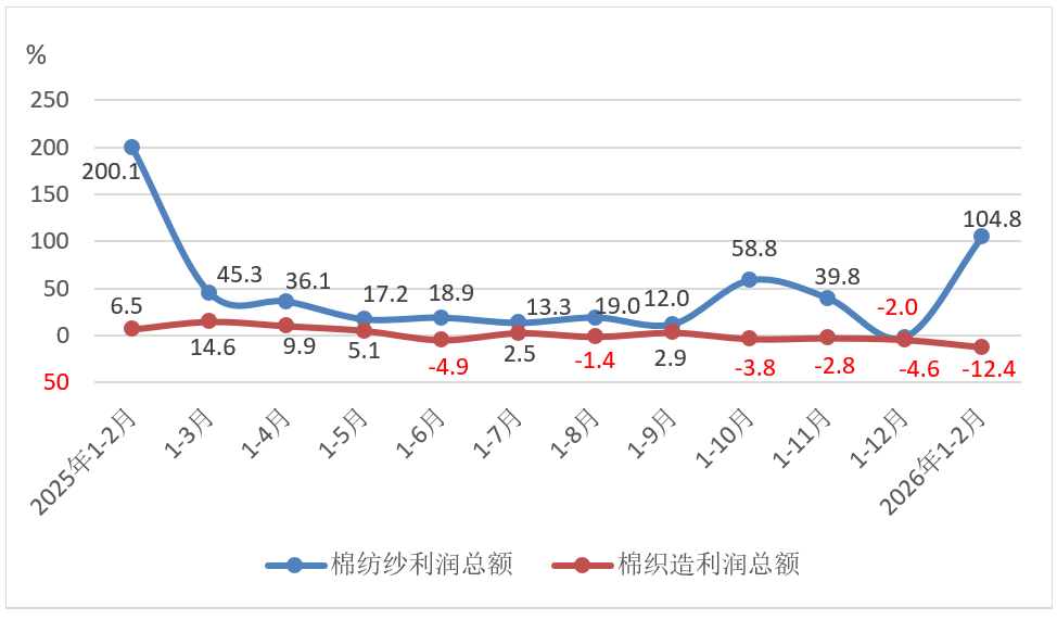 行业利润总额大幅增长,新疆纺织业亏损近3亿——2026年2月棉纺织月度分析报告(规上企业篇)