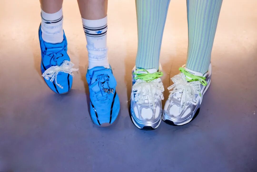 这种能力在 Remake 区域得到了进一步延伸,这不仅是一次关于鞋履配件的手工体验,更是一场关于个人审美主权的探索。大家用不同纹理的配件和色彩斑斓的珠链、鞋带,试图在经典廓形上留下独一无二的创新烙印,将个人的生活态度投射在方寸之间。无论是专注于手中的 Remake 创作,还是与同类之间关于穿搭灵感的碰撞,本质上都是一场激发创造力的仪式,都是在真实空间里完成对「美得自由」这一主题的进一步探索。