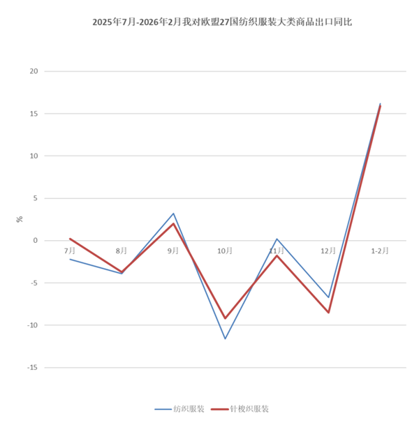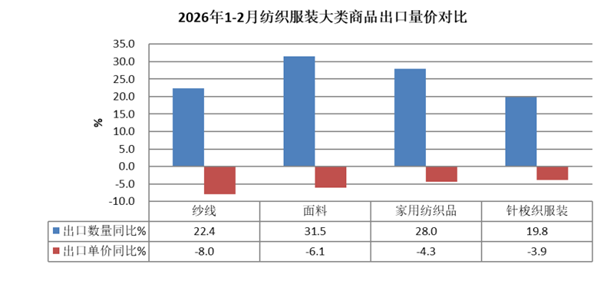 2026年1-2月纺织品服装贸易呈现如下特点: