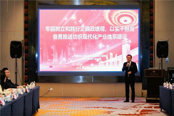 会上,举行了2026年百名科学家讲党课活动。中国纺织工程学会党委书记、副理事长,中国纺织工业联合会党委常委、副会长李陵申以“牢固树立和践行正确政绩观,以实干担当奋勇推进纺织现代化产业体系建设”为题为与会代表讲授了一堂生动的党课。李陵申从“筑牢思想根基——深刻把握正确政绩观的内在要求”“全面从严治党——践行党的根本宗旨夯实党的执政根基”“聚焦核心使命——以创新驱动纺织现代化产业体系建设”3个方面进行讲授。