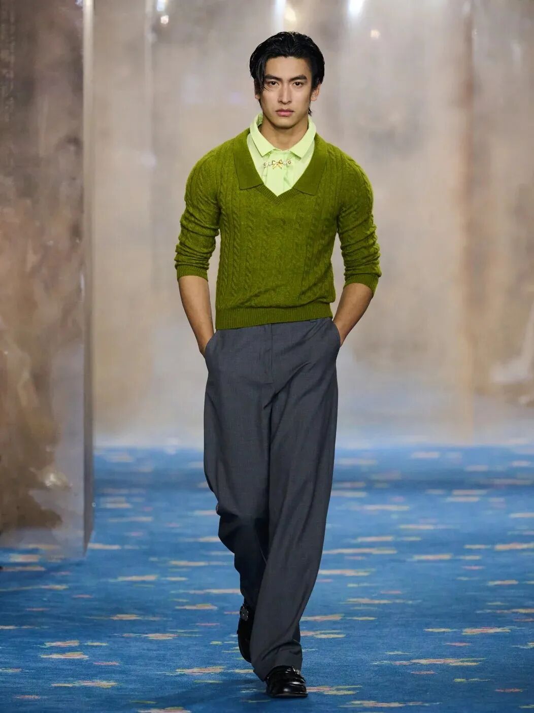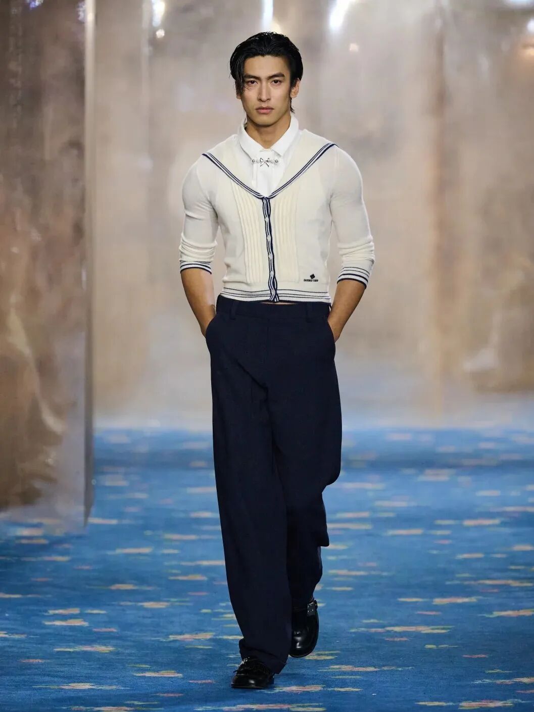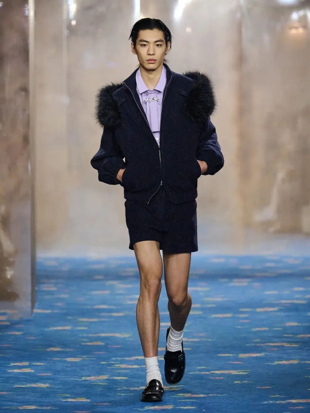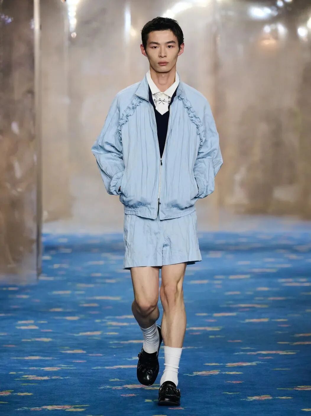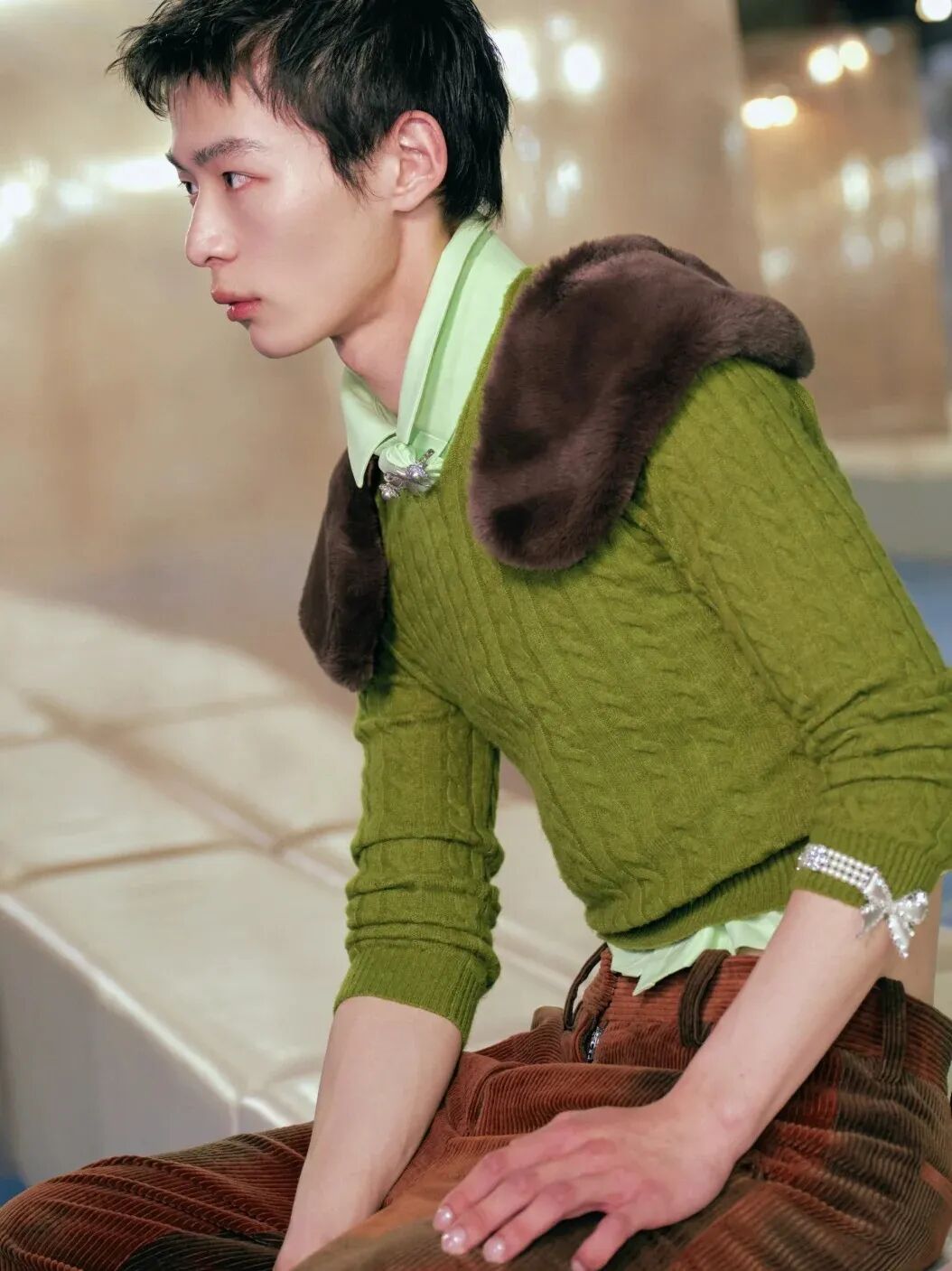 是根植于这一季的故事,自然延展出来的展示方式。这次由男模演绎的几个 Look 其实只是在系列开发过程中风格更中性的款式,我们暂时没有开启男装线的计划。我们这一季的主题讨论的是身份构建与表演性,我们自然而然地想到,用不一样性别的身体来展开另一个维度的讨论。如果之后要做男装的话,我觉得肯定会持续我们对于身份议题的讨论:与传统男性气质相悖的柔软与流动感会是一个可能的方向。