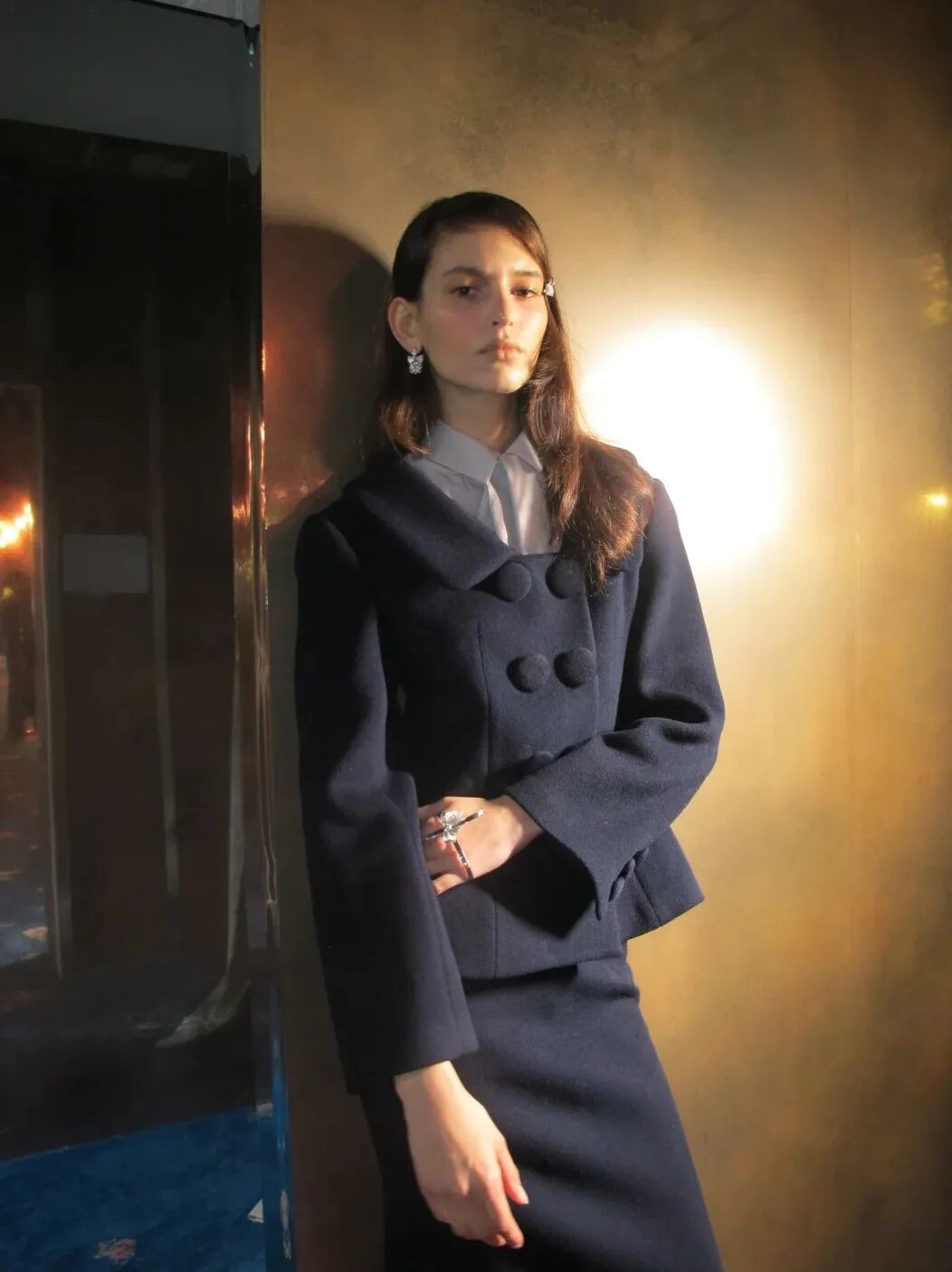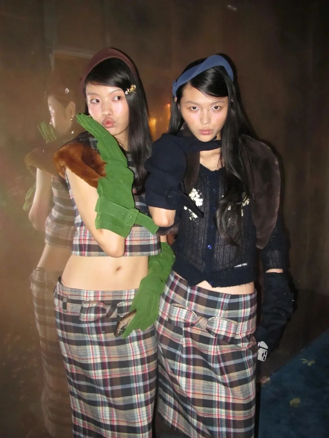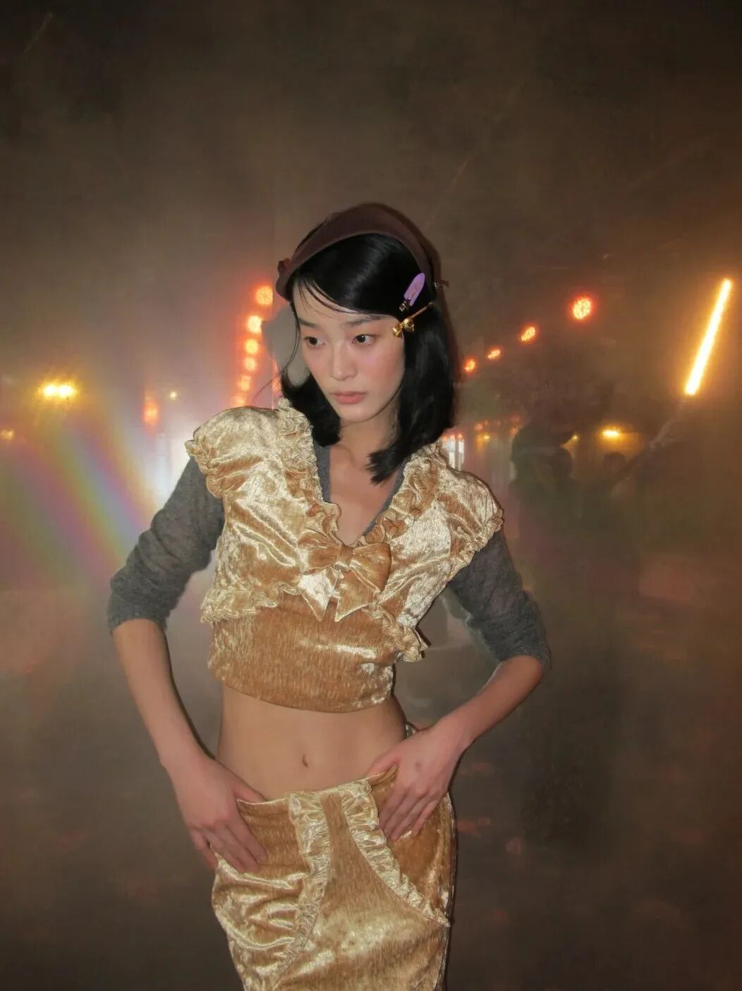 SHUSHU/TONG一直都不是单纯又甜美的,我们每次都形容 SHUSHU/TONG 女孩是 cute but twisted,所以我们也一直在尝试和传统上的少女气质不一样的材质和设计,探索如何将少女的叙事进一步延展。比如,我们几乎每一季都会有西装外套;SS26 系列我们使用了大量做旧的工艺,擦色皮料、卷边衣领、线头;AW26 系列尝试了褶皱面料和具有破碎感的印花图案。