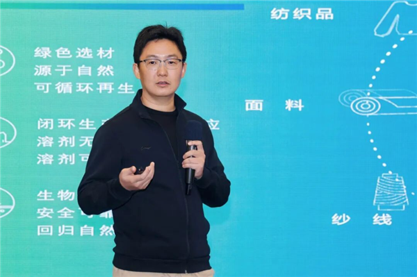 以《印染革新 绿动时尚——莱赛尔印染技术突破助力产业高质量升级》为题,深入剖析了莱赛尔纤维在技术突破与应用拓展上的双重变革。他指出,莱赛尔正加速从传统家纺、牛仔领域向针织多元场景渗透,已覆盖女装打底、内衣家居及运动服饰等系列。针对行业痛点,江建国重点介绍了LyoLink®莱赛尔锁纤科技,该工艺通过分子交联有效抑制原纤化,让衣物历久弥新,同时配套的防擦伤剂与优化工艺,解决了染整过程中的擦伤难题,大幅提升生产效率与产品品质,为莱赛尔产业高质量升级注入核心动能。