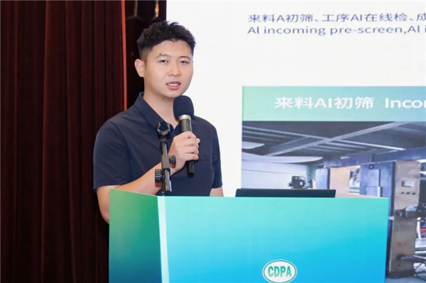 就《高透湿防水轻薄复合面料开发与染整工艺优化》为主题进行高透湿防水复合面料的技术突破相关内容的分享。他表示,目前自主研发的生物基微多孔膜系列,在透湿与耐水压性能上媲美国际高端材料,且制成的冲锋衣手感柔软、无摩擦异响,提升了穿着质感。此外,公司应用AI智能验布机,提升了生产环节的质控效率。他展示了涂泰克通过生物基材料创新、工艺优化与智能化生产,在实现高功能、环保性(无氟化)的同时,能有效控制成本并提升产品质感,为高端功能性面料的开发提供新的解决方案。