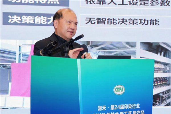 在《技术赋能·绿色破局——印染助剂创新与印染工艺优化》的主题报告中从绿色制造、绿色印染、创新方案三个维度分享了润禾在相关领域的具备强劲市场竞争力的产品线以及前沿技术方案。他表示,在产品方面,公司重点开发高相容性硅油及无氟防水剂等绿色解决方案,有效助力下游客户应对环保要求与出海认证挑战;在工艺创新上,通过前处理低温工艺等新技术,显著降低了水、电等能源消耗,提升生产效率。未来,润禾将继续坚持“环保、高效、节能”的理念,通过技术创新与产业链协同,推动印染行业向绿色化、高性能化持续发展,为行业可持续未来贡献力量。