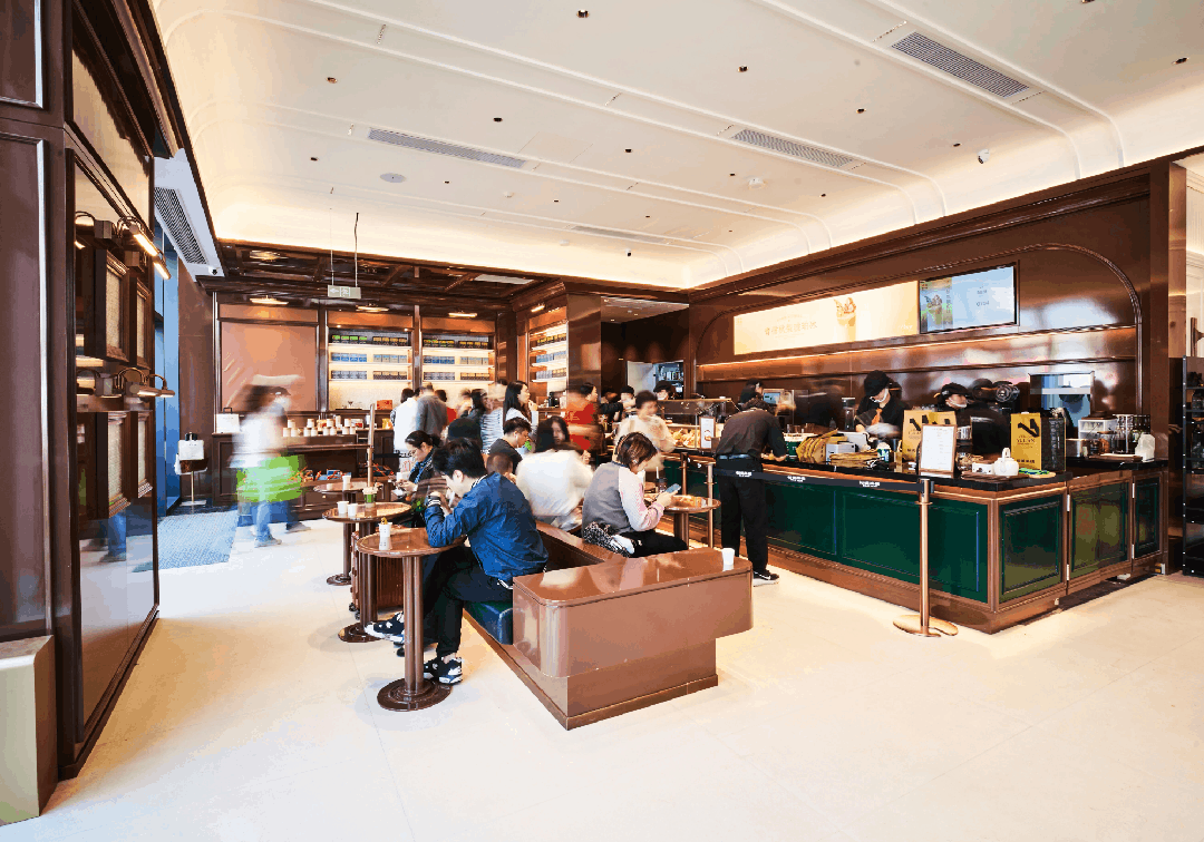 广州聚龙湾太古里店结合滨水文脉与红砖古建肌理,将岭南文化与东方茶韵自然相融,文化氛围感拉满。