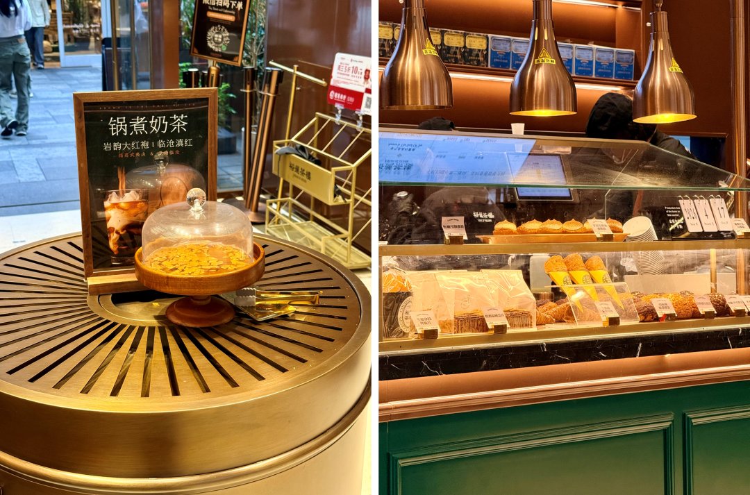 这样一来,客人不仅能在店内试吃试饮,便于品牌积攒客流和人气,还能在购买现制的茶品和烘焙甜点之外,按需带走不同风味的茶包和茶点成品,门店的单次客单价轻松打到了近百元。