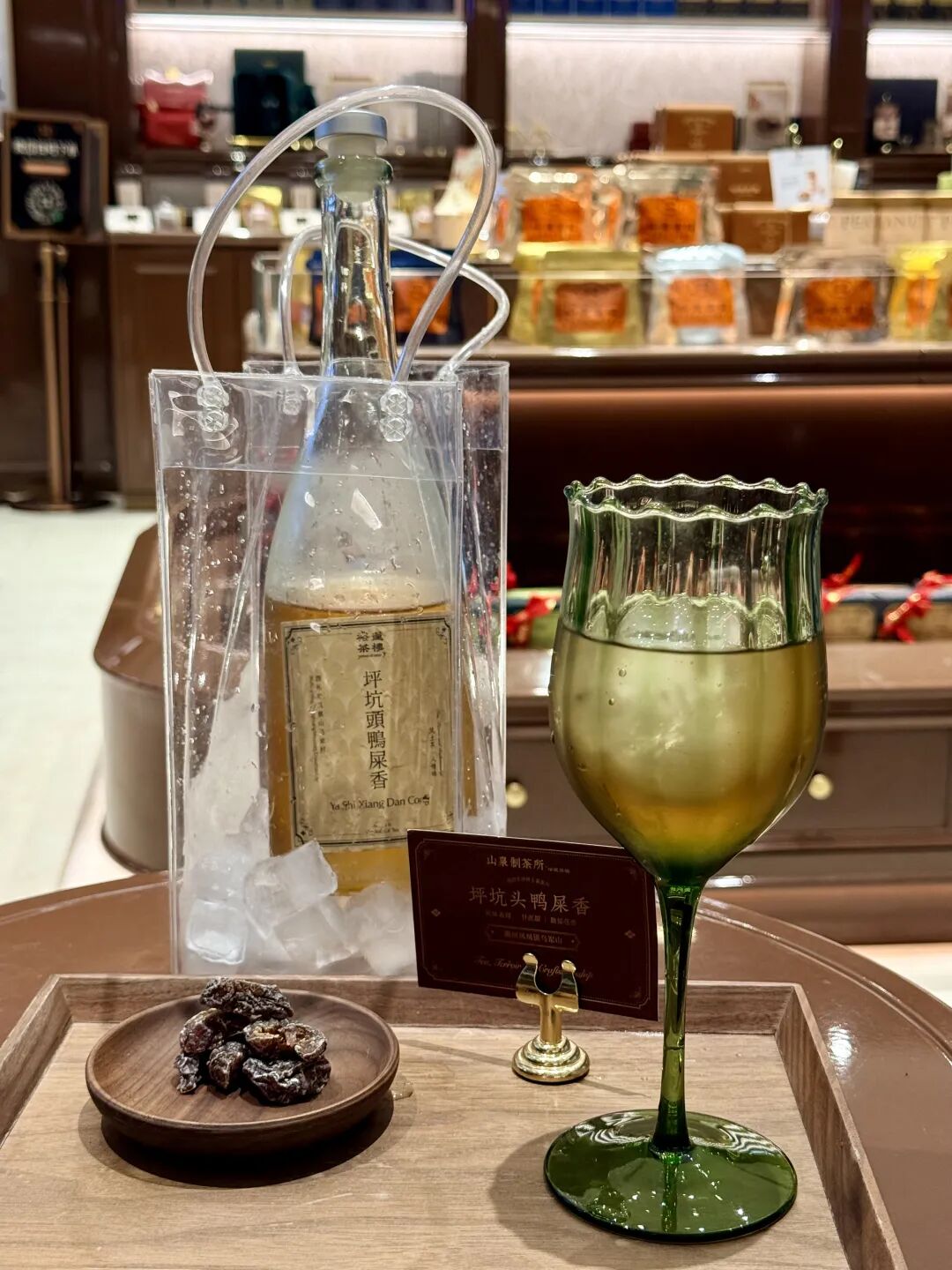 坪坑头鸭屎香冷泡系列,搭配十蒸九晒梅、配有一个茶杯。