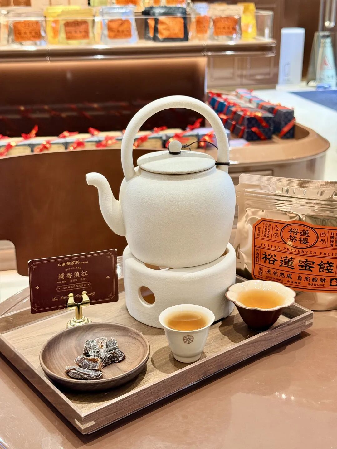 值得一提的是,沏茶师系列的每一款茶,都会对应贴心搭配一款特色蜜饯或果干。这一套点单和摆盘的设置,不仅会使得整个喝茶体验的口感更好,还能让客人感觉到山泉制茶所的特色所在。